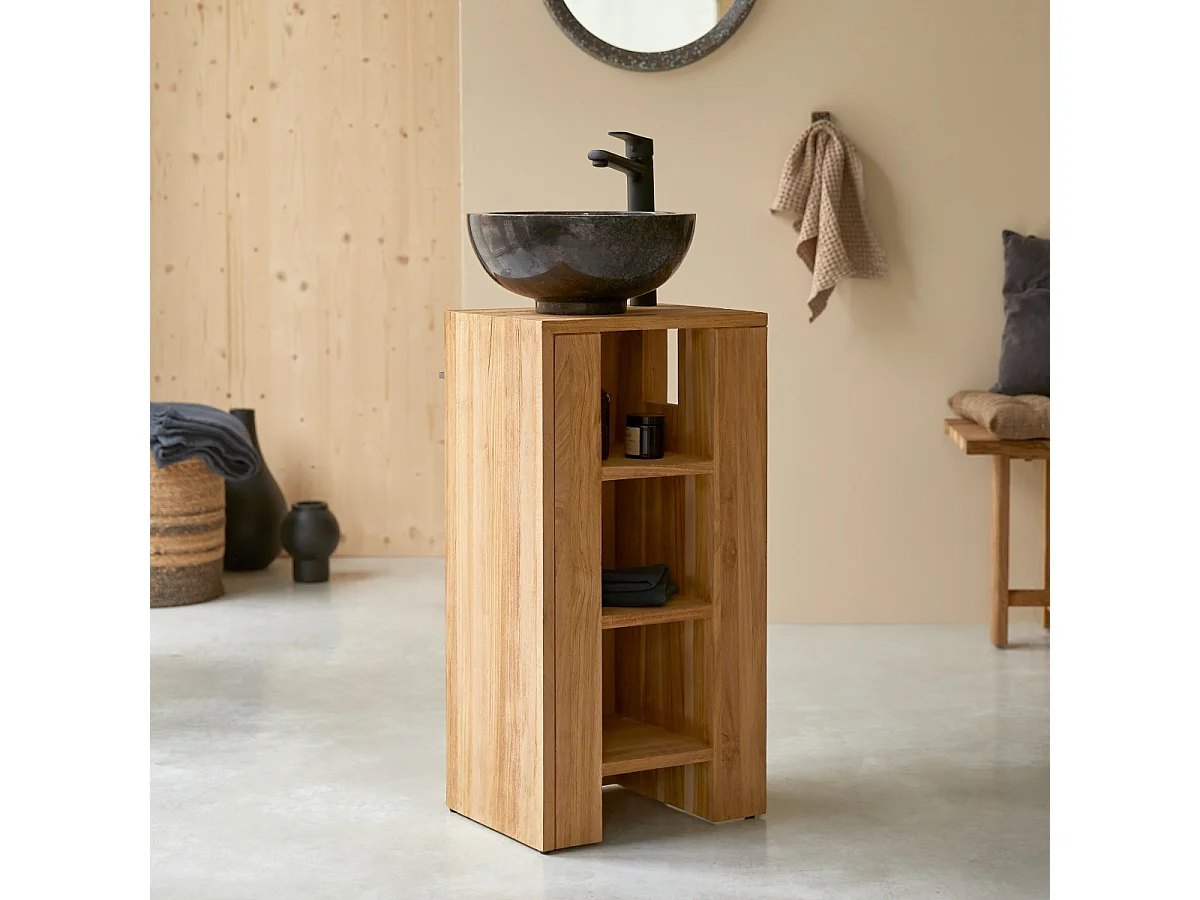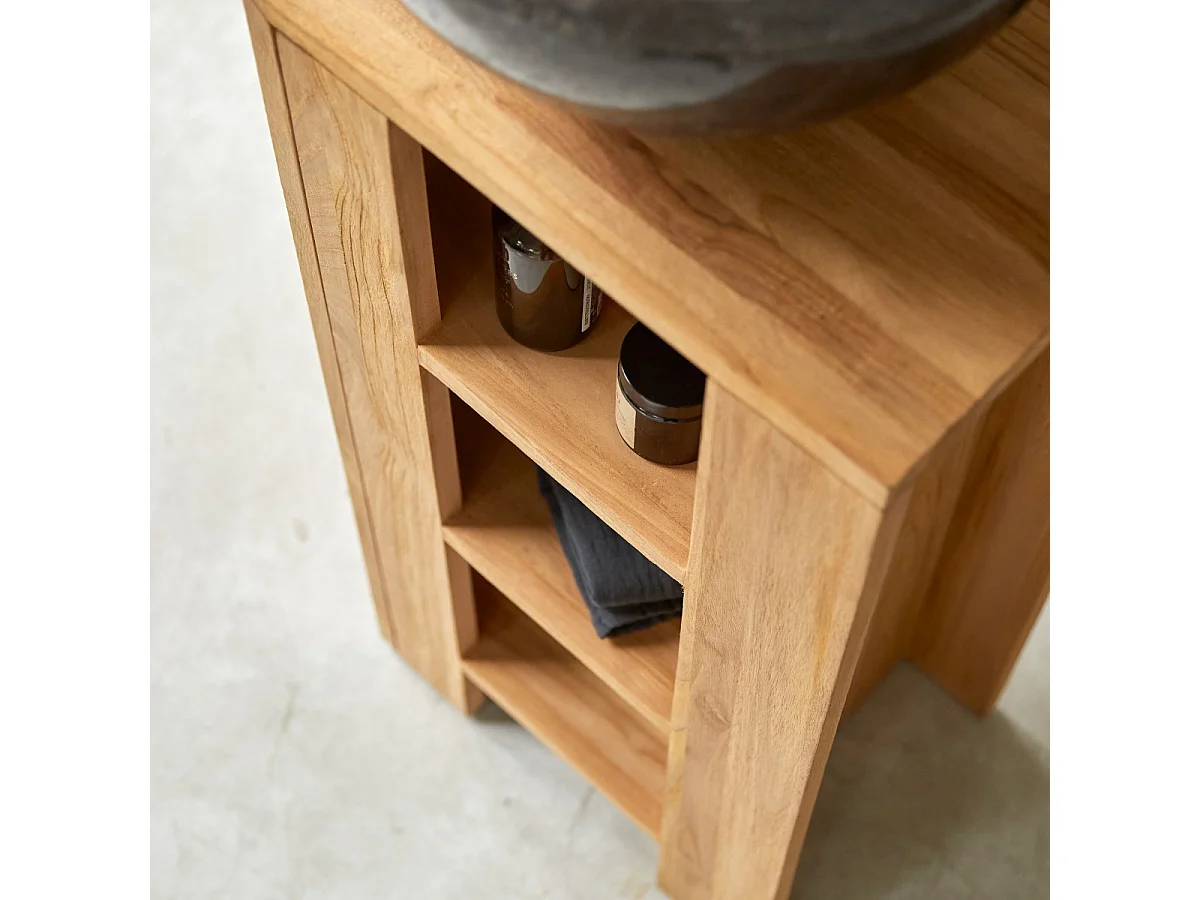 Waschtisch Bad Gästebad kleine Räume Teak Handtuchhalter Unterschrank massiv