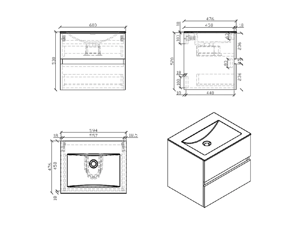Waschtisch + Unterschrank 60cm montiert Eiche hell SIENA