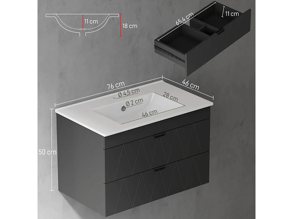 Waschtisch, Waschbeckenunterschrank Hängender Unterschrank mit Close-Schubladen