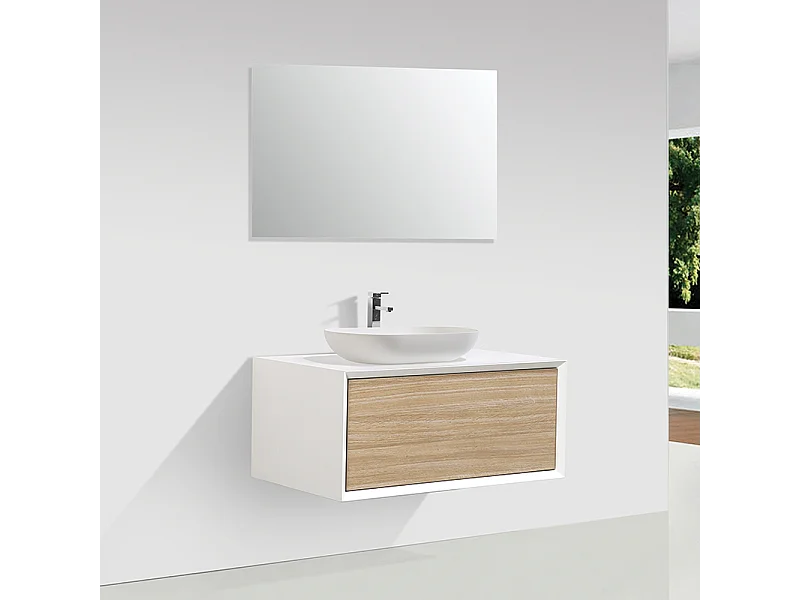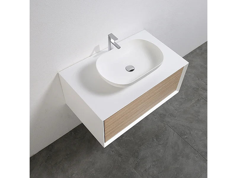 Waschtischunterschrank für Aufsatzwaschbecken 90cm vormontiert weiß/Eiche hell PALIO