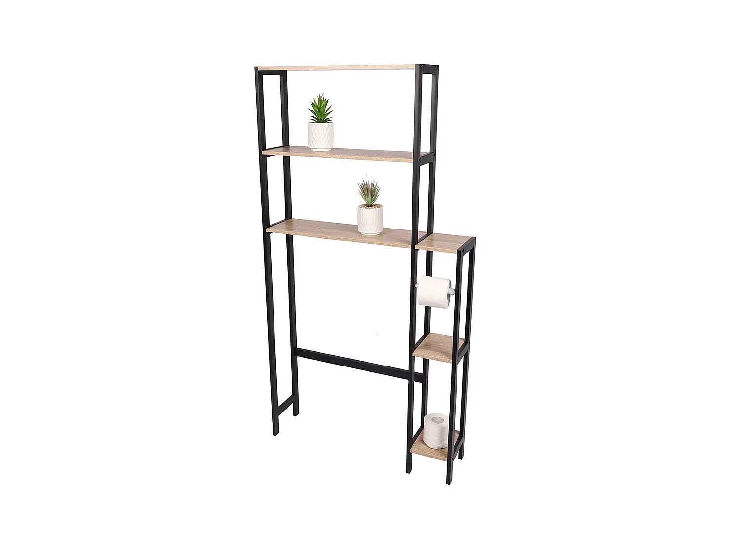 WC-Umrandungsmöbel HOLBORN Eiche und Schwarz mit Regalen - Industrielles und praktisches Design