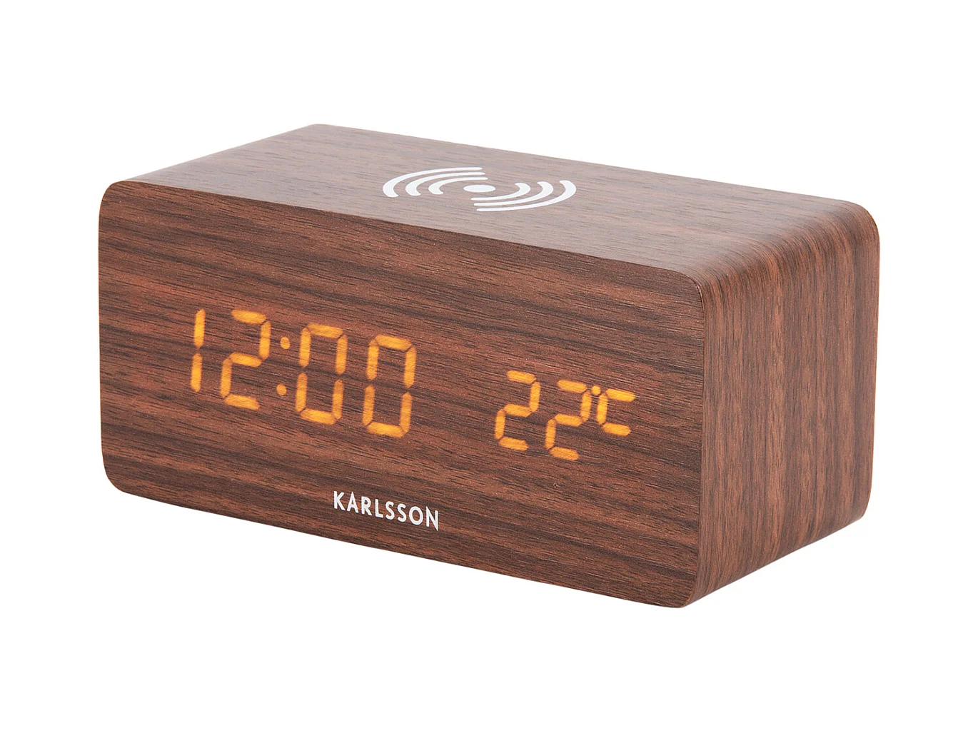 Weckerblock mit Telefonladegerät LED - Dunkles Holz