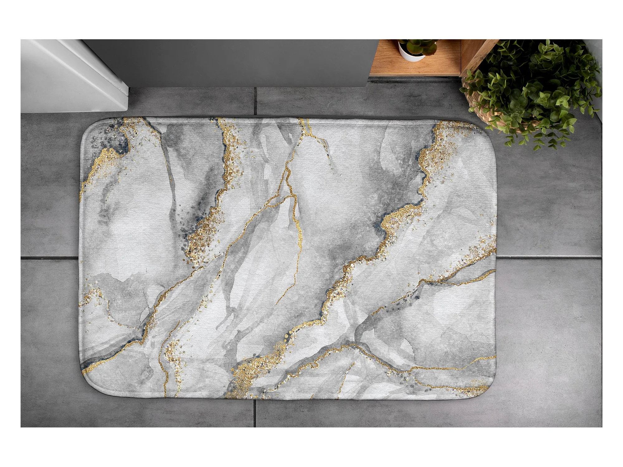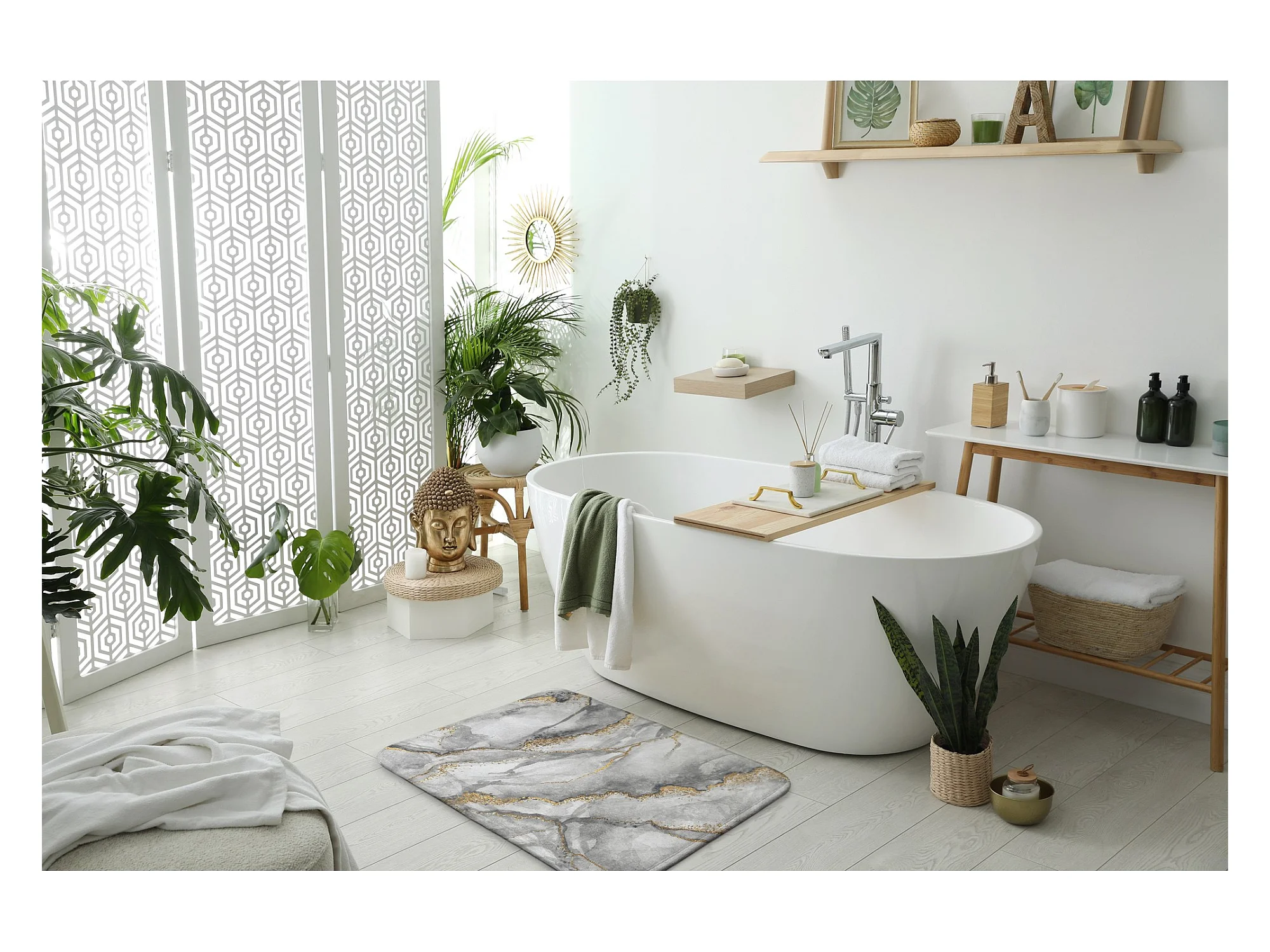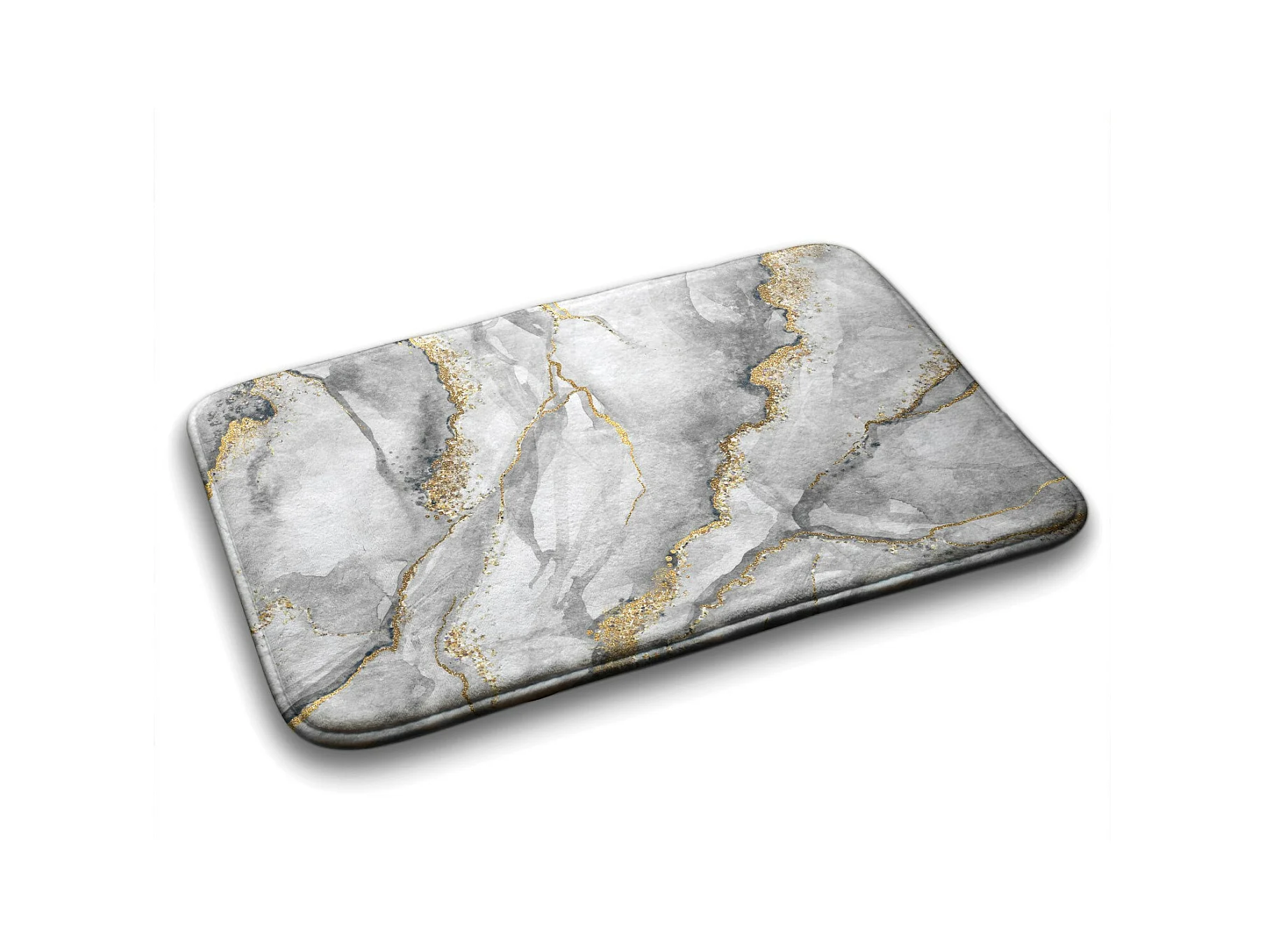 Weicher Badezimmerteppich 75 x 45 cm – eleganter rutschfester Badezimmerteppich aus grauem Marmor