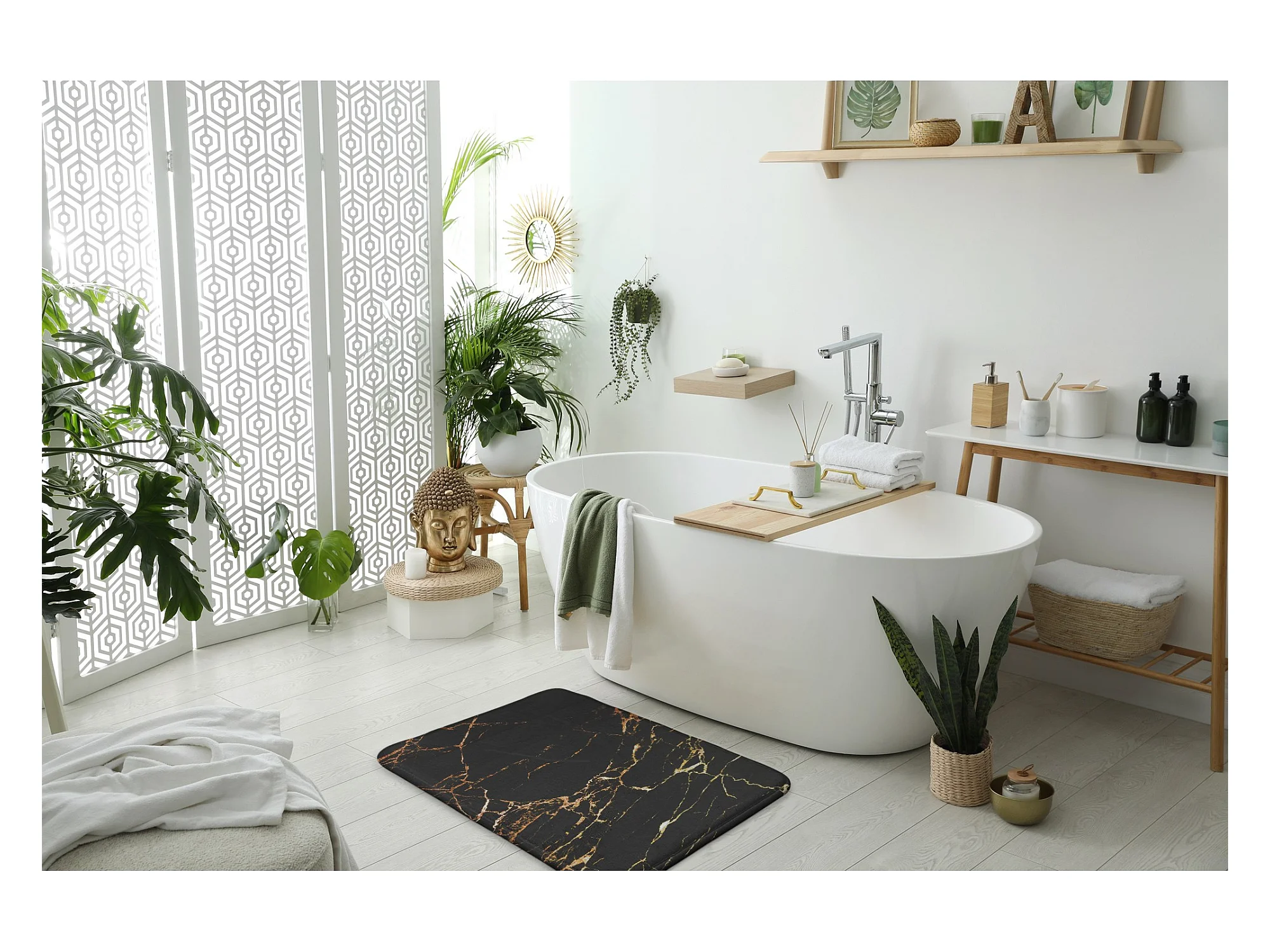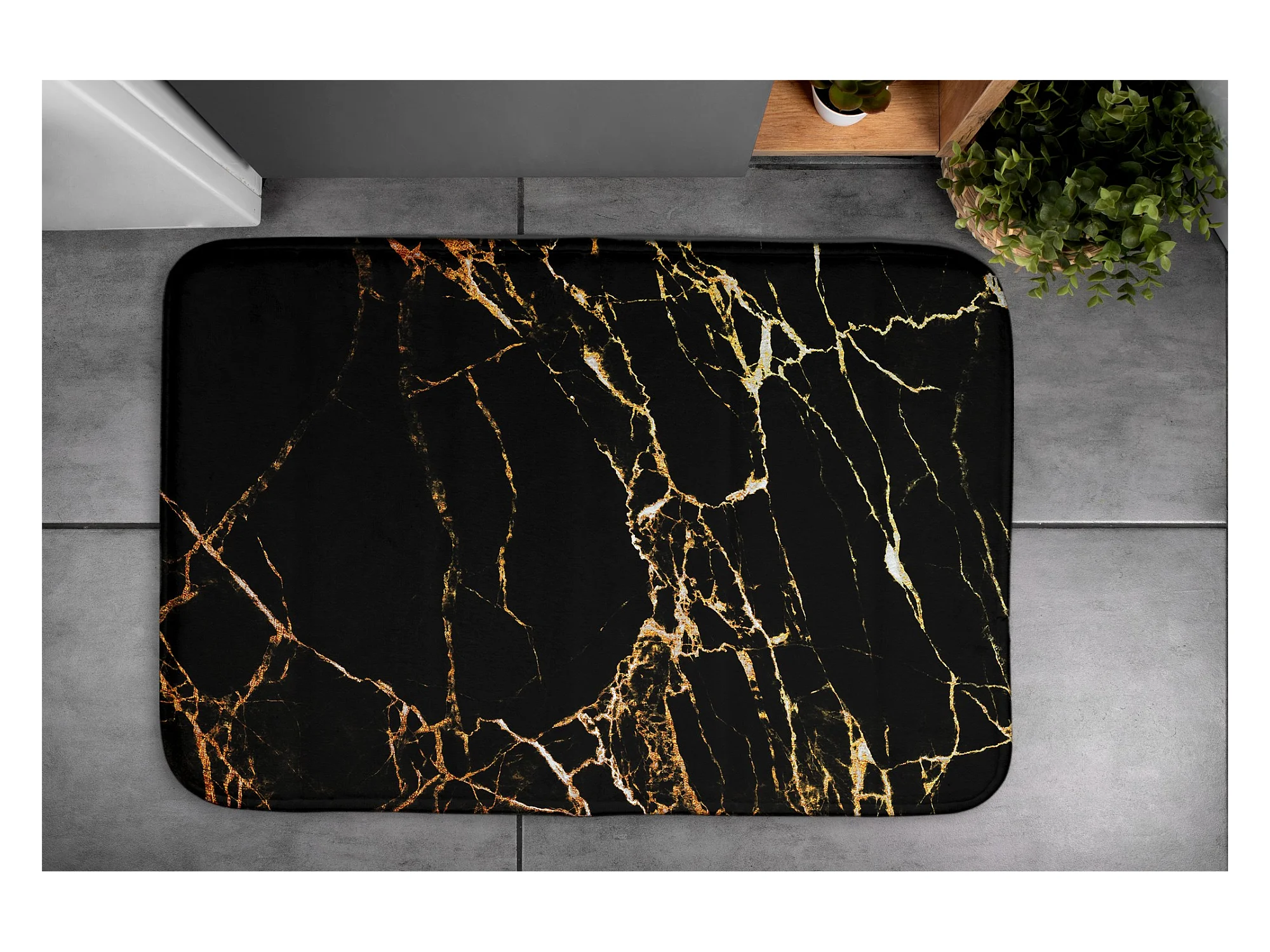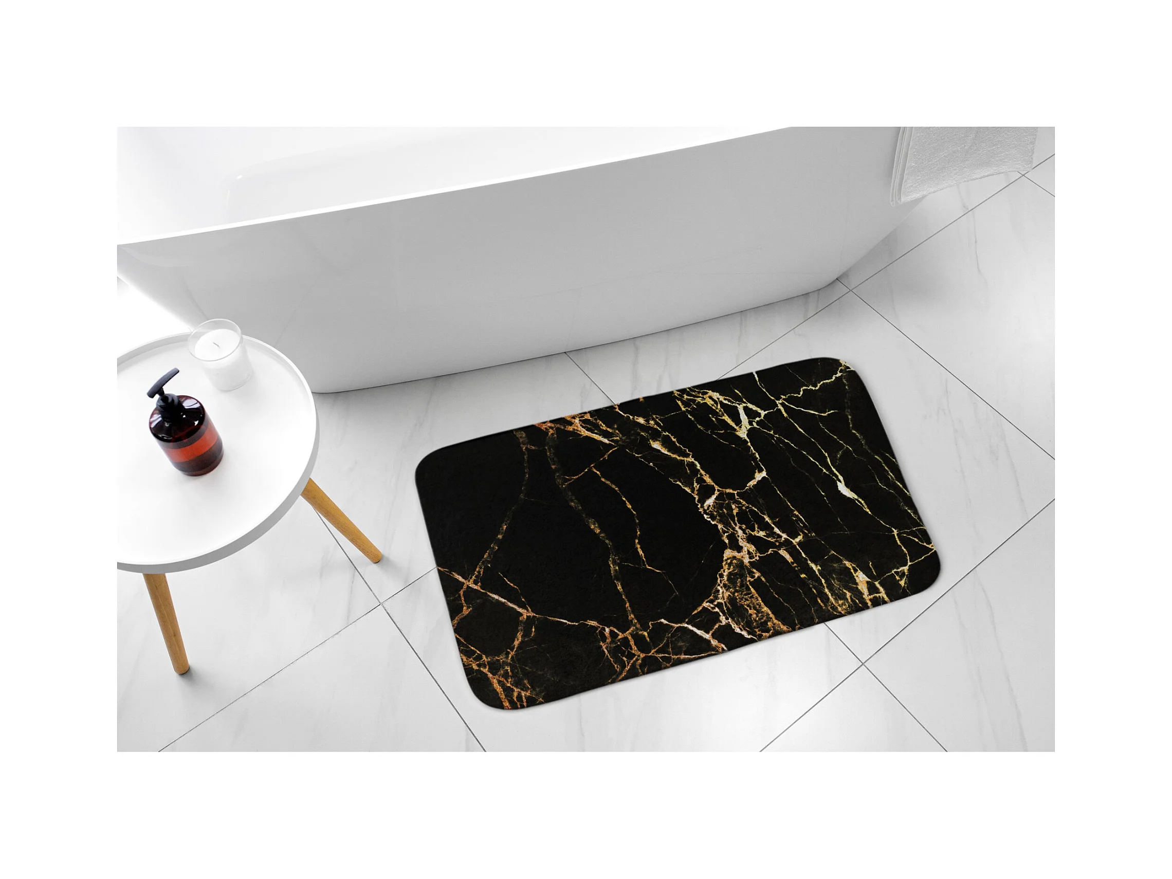 Weicher Badezimmerteppich 75 x 45 cm – rutschfester Badezimmerteppich mit klassischem Marmormuster