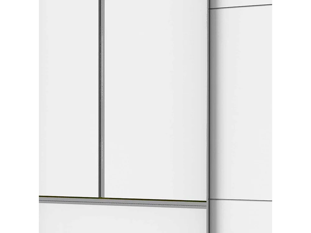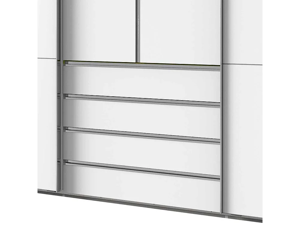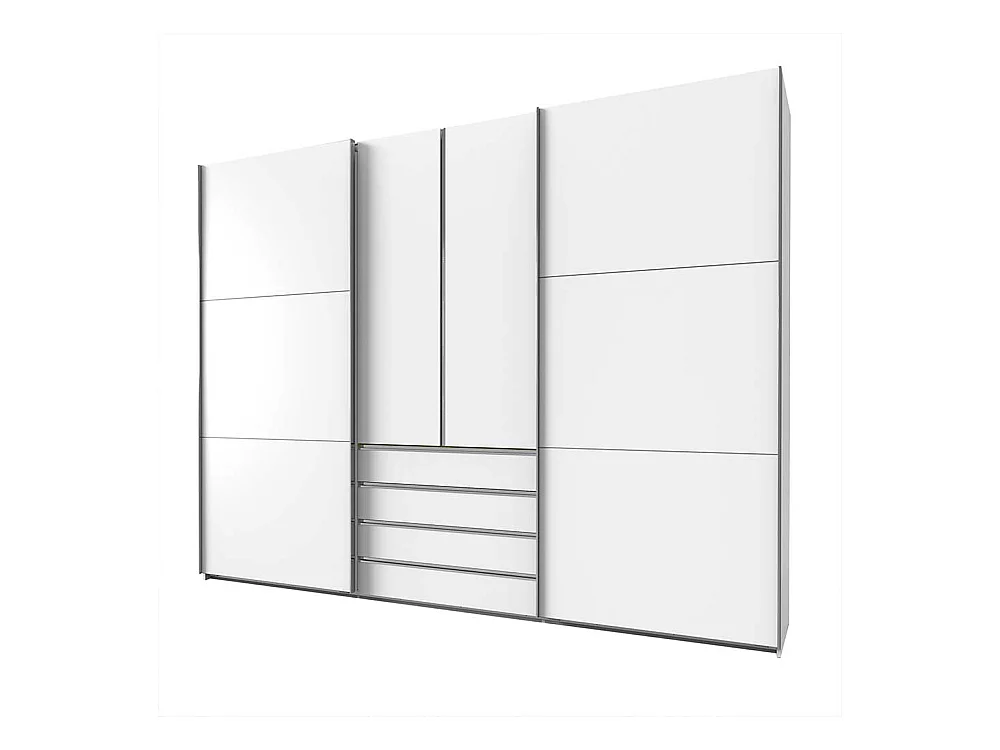 Weißer 300 cm Schlafzimmerkleiderschrank mit Dreh- und Schiebetüren vier Schubladen