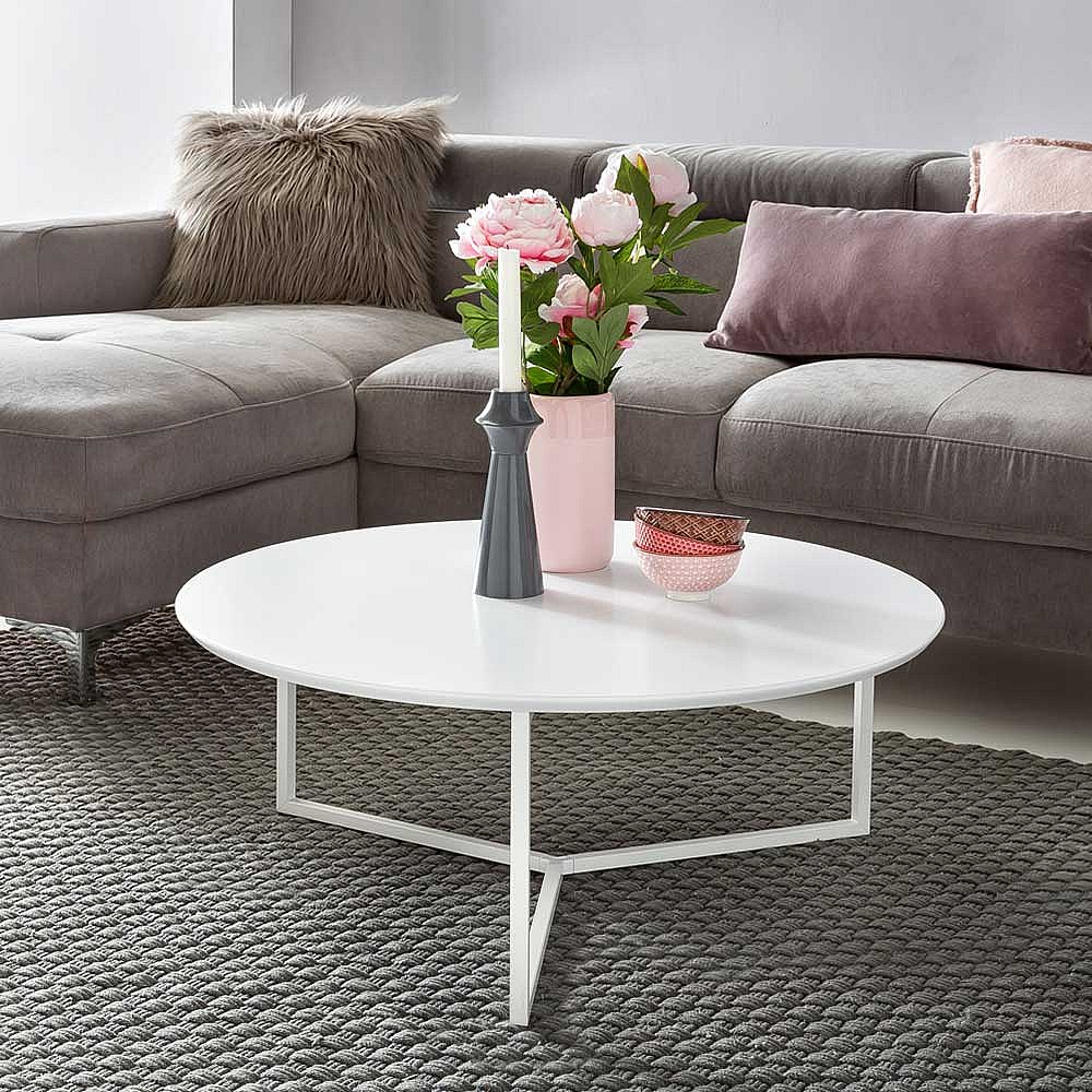 Weißer Couchtisch rund im Skandi Design 80 cm Durchmesser