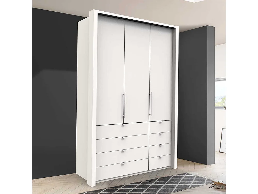 Weißer Kleiderschrank mit Falttüren acht Schubladen
