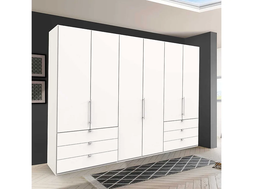 Weißer Kleiderschrank mit Falttüren sechs Schubladen