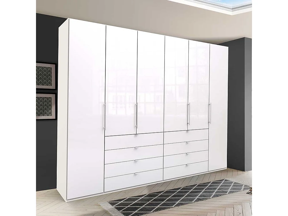 Weißer Kleiderschrank mit Schubladen Falttüren