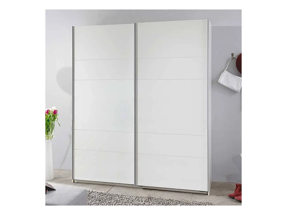 Weißer Schlafzimmerkleiderschrank mit Schwebetüren 198 cm hoch