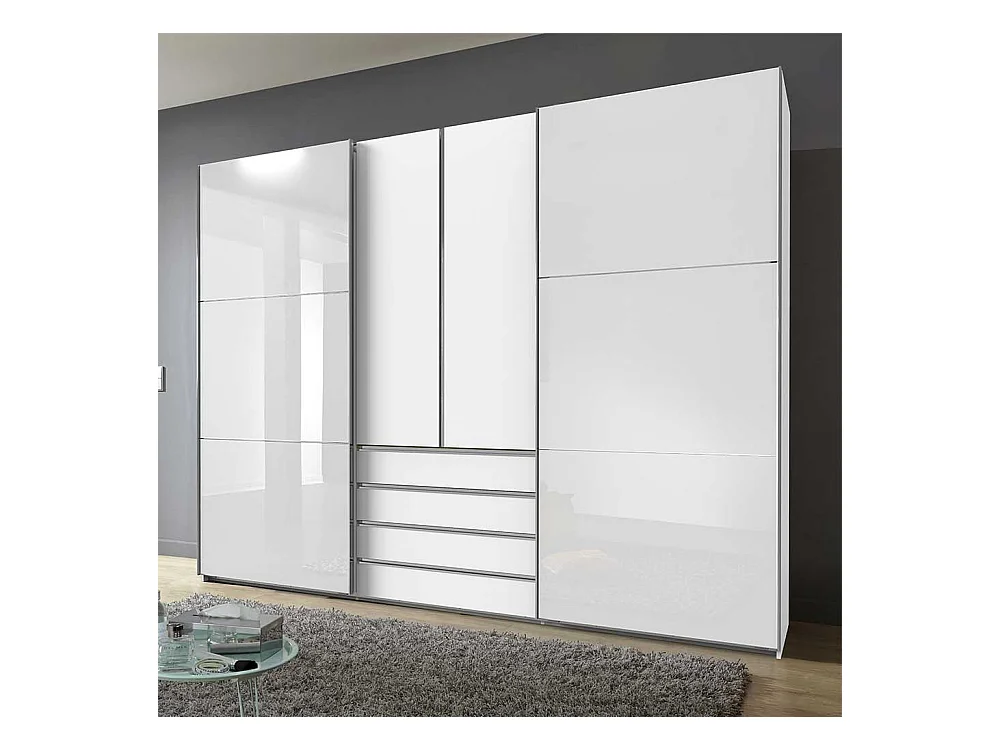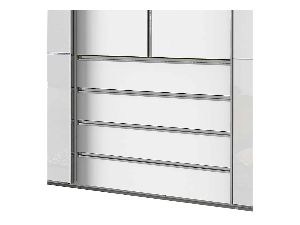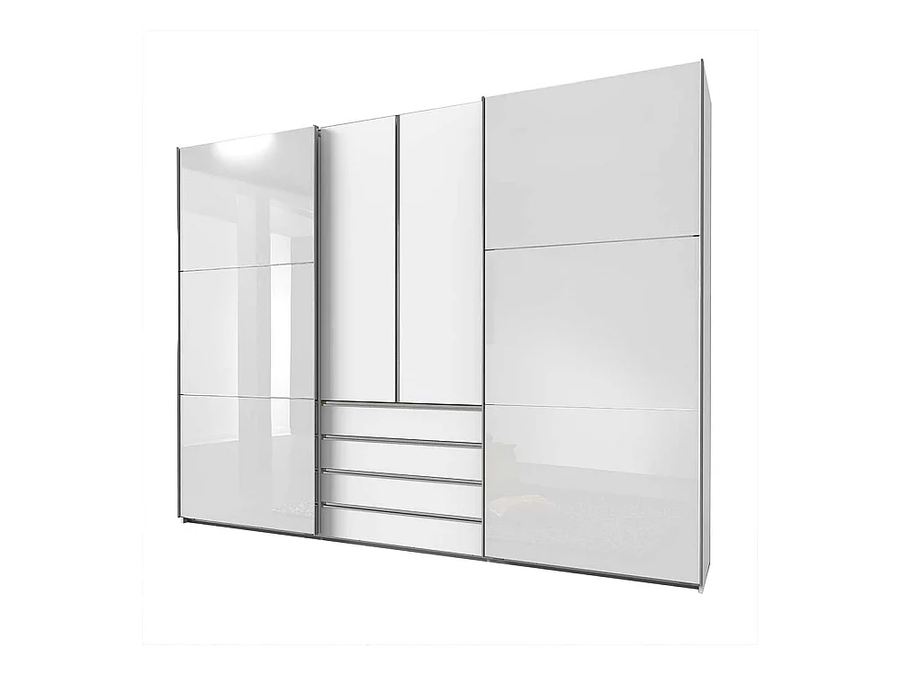 Weißer Schlafzimmerschrank groß mit Dreh- und Schiebetüren vier Schubladen