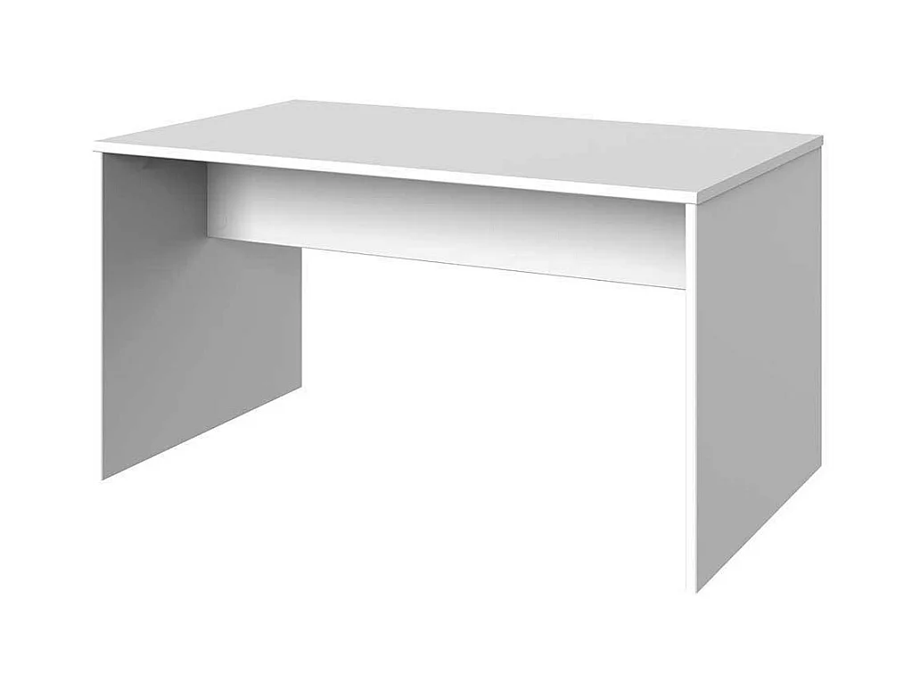 Weißer Schreibtisch mit Knieraumblende Wangen Gestell