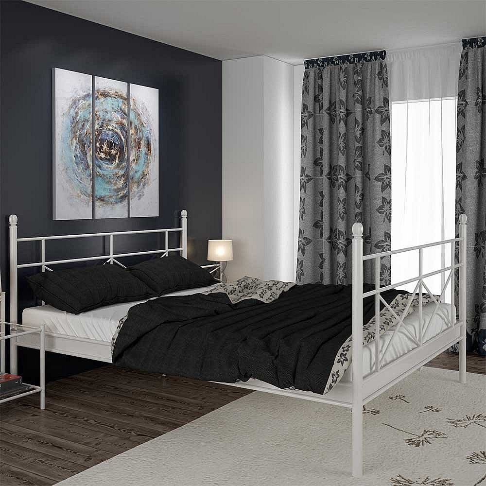 Weißes Metallbettgestell im Landhausstil 90x200 und 160x200 cm