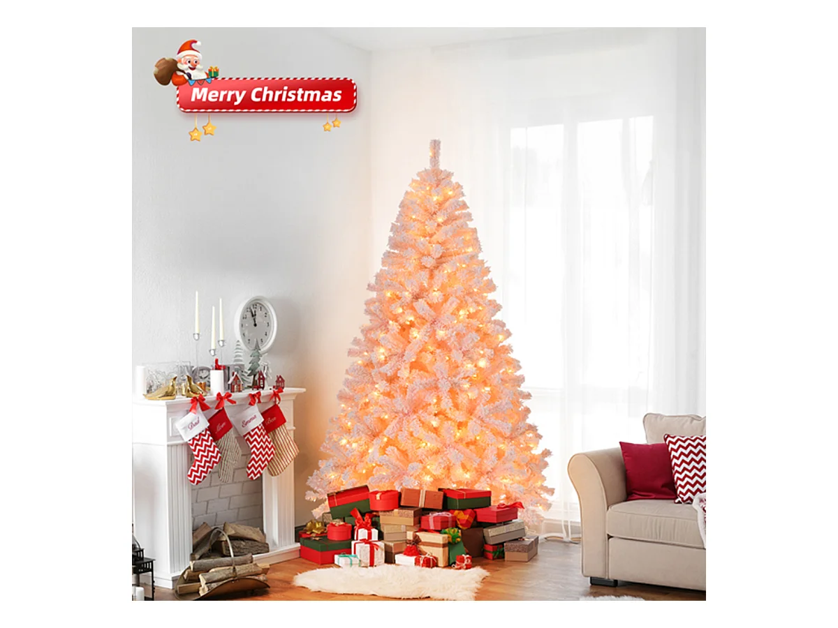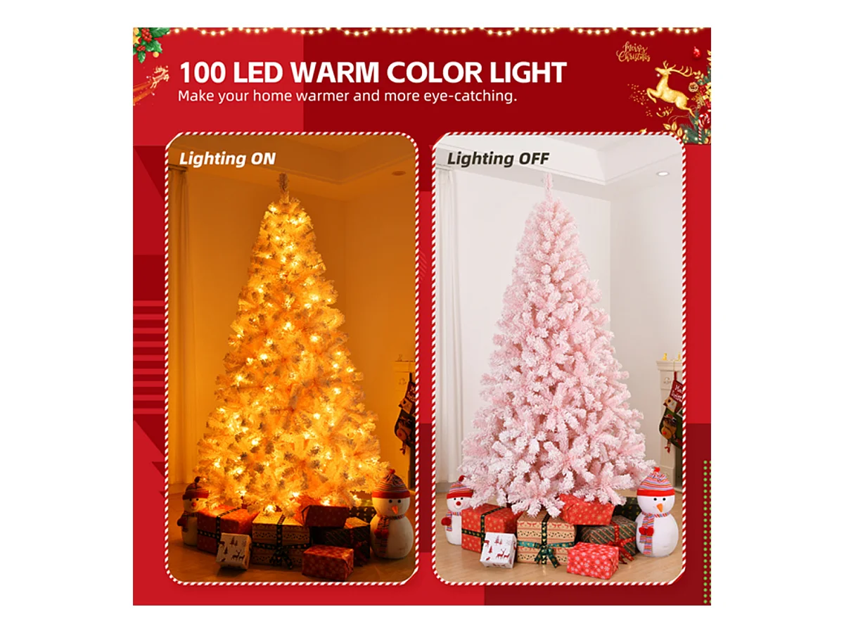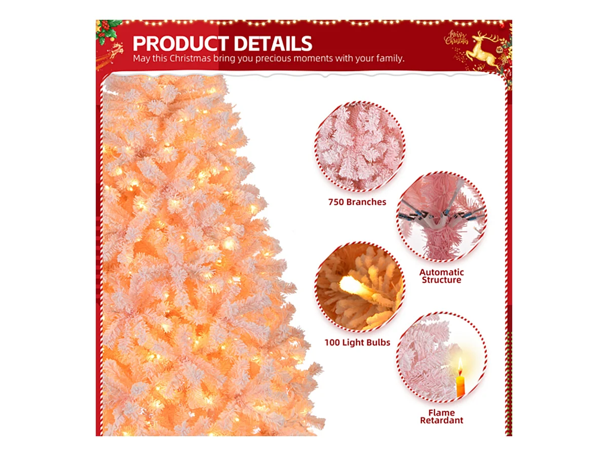 Weihnachtsbaum mit 100 warmen Lichtern und 750 Zweigspitzen Künstlichen Weihnachten Tannenbaum Weihnachtsdekoration Rosa