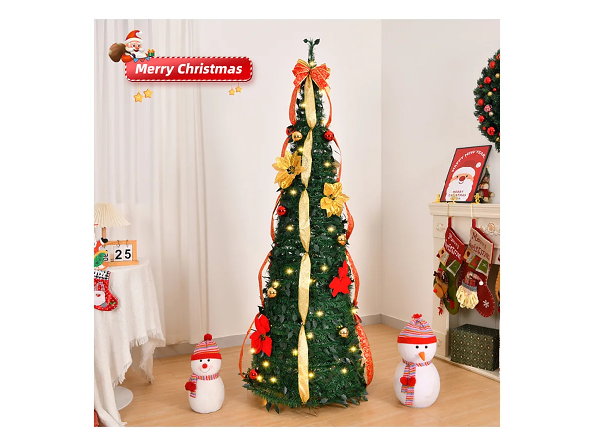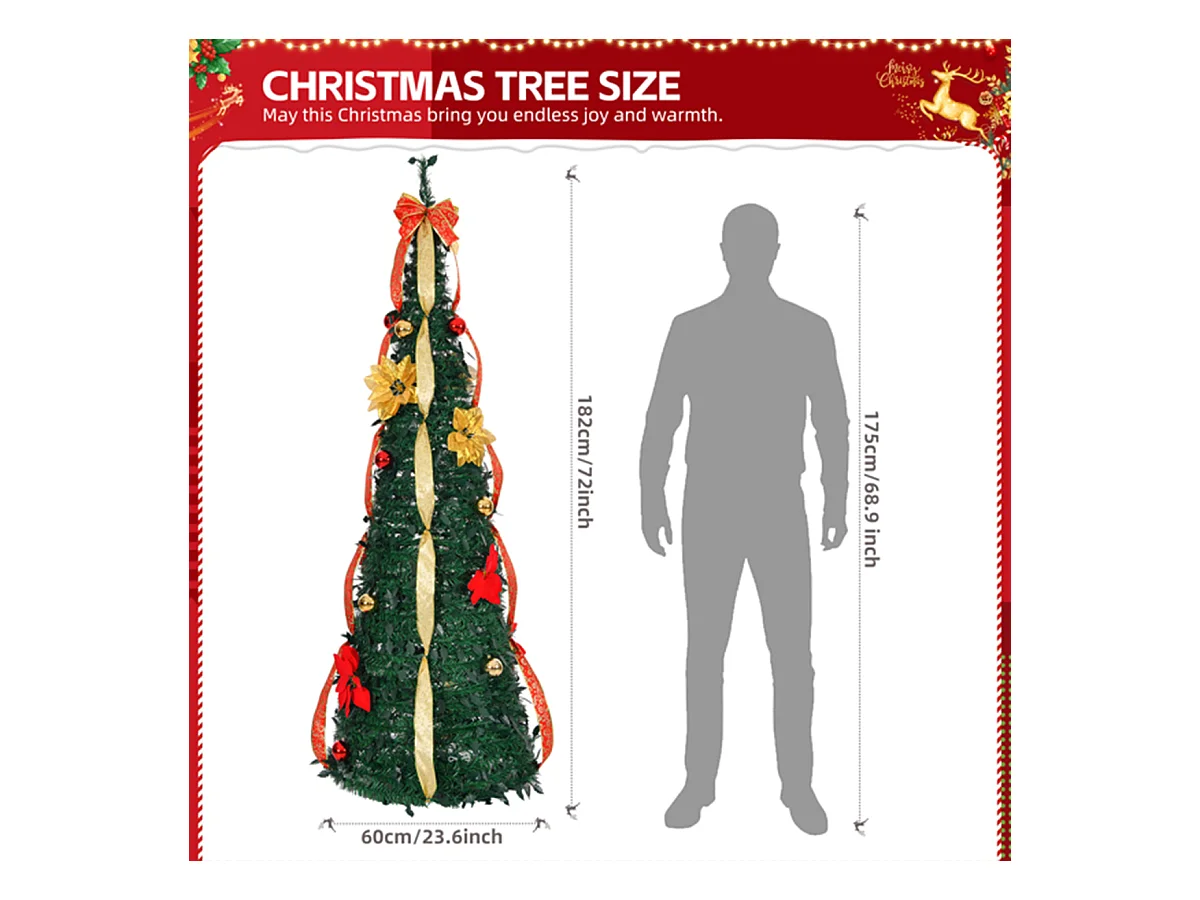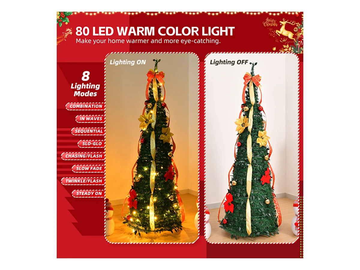 Weihnachtsbaum mit 80 Warmen Lichtern und Ornamenten Künstlichen Weihnachten Tannenbaum Weihnachtsdekoration 6FT