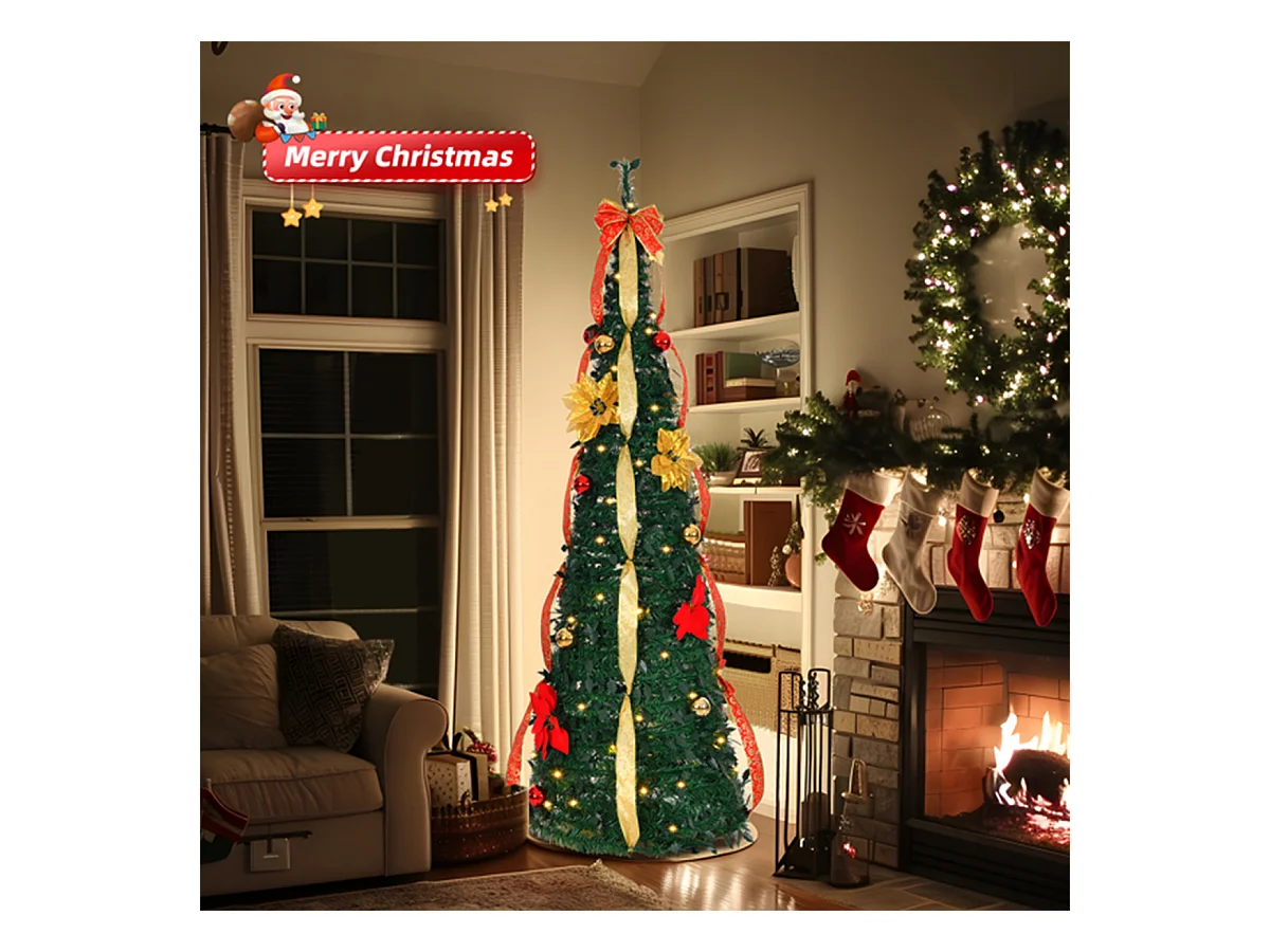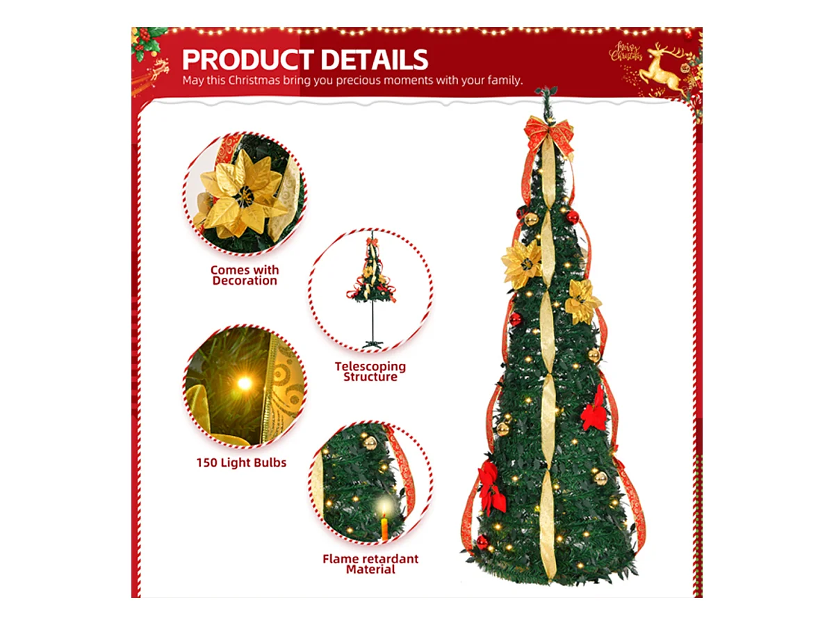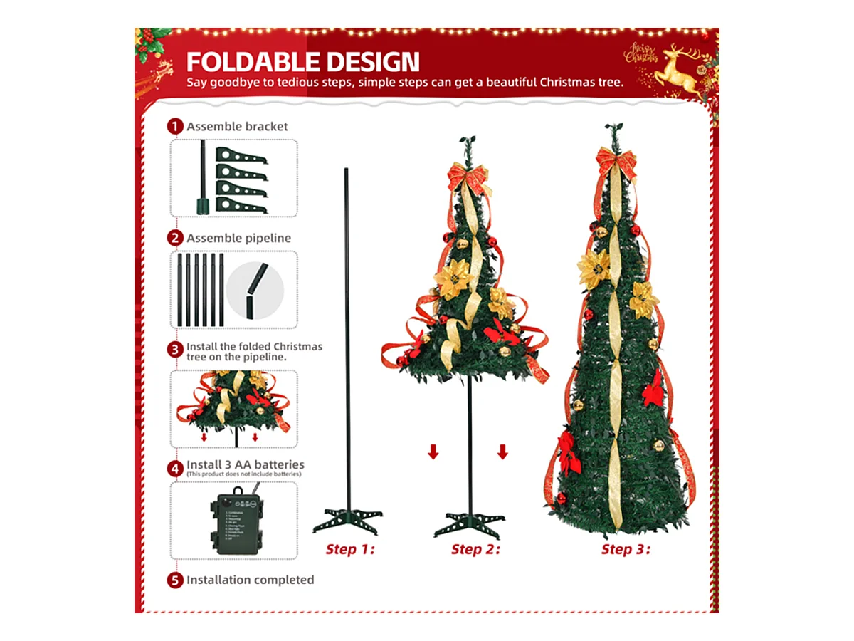 Weihnachtsbaum mit 80 Warmen Lichtern und Ornamenten Künstlichen Weihnachten Tannenbaum Weihnachtsdekoration 6FT