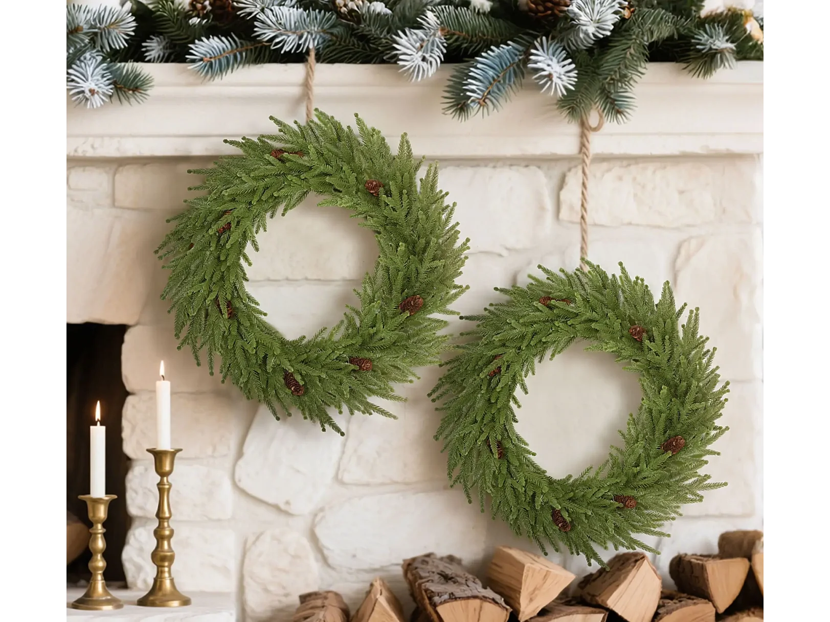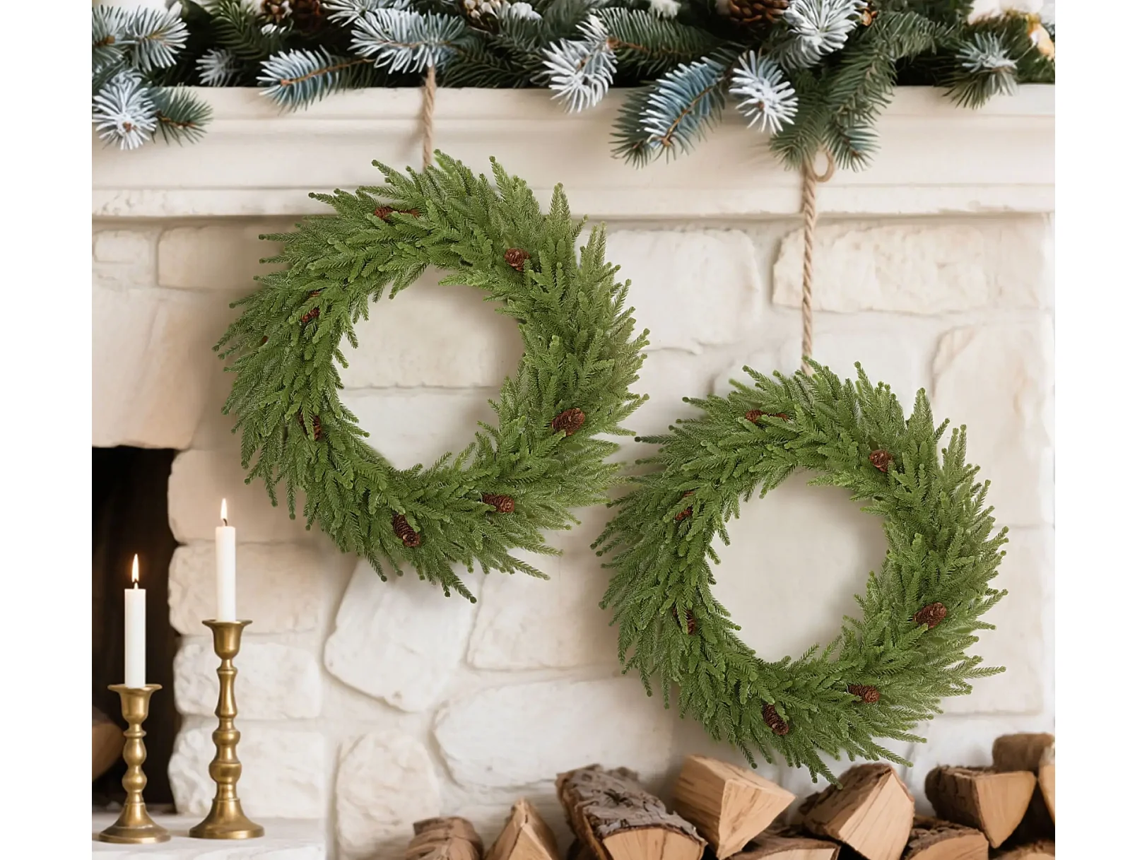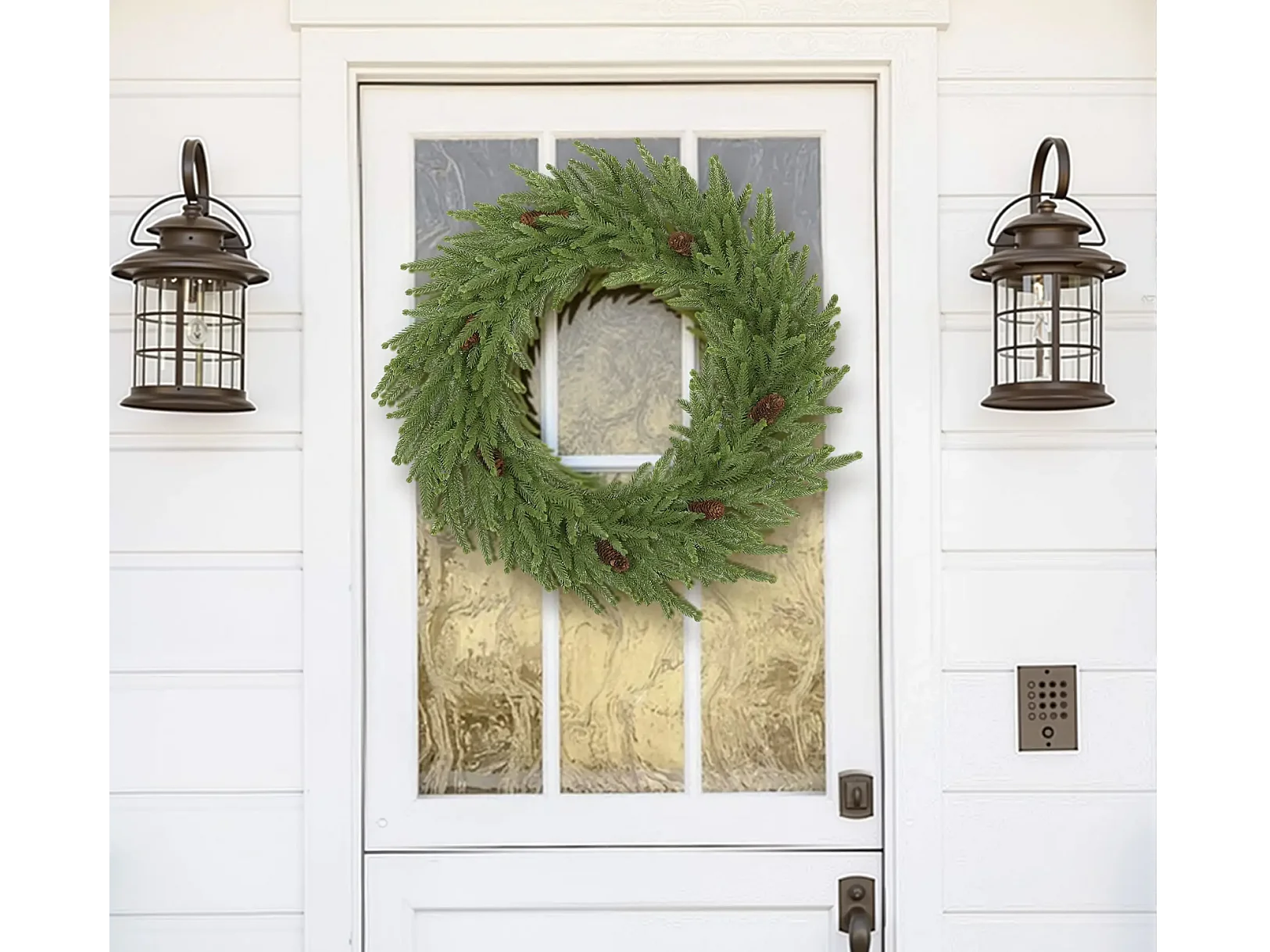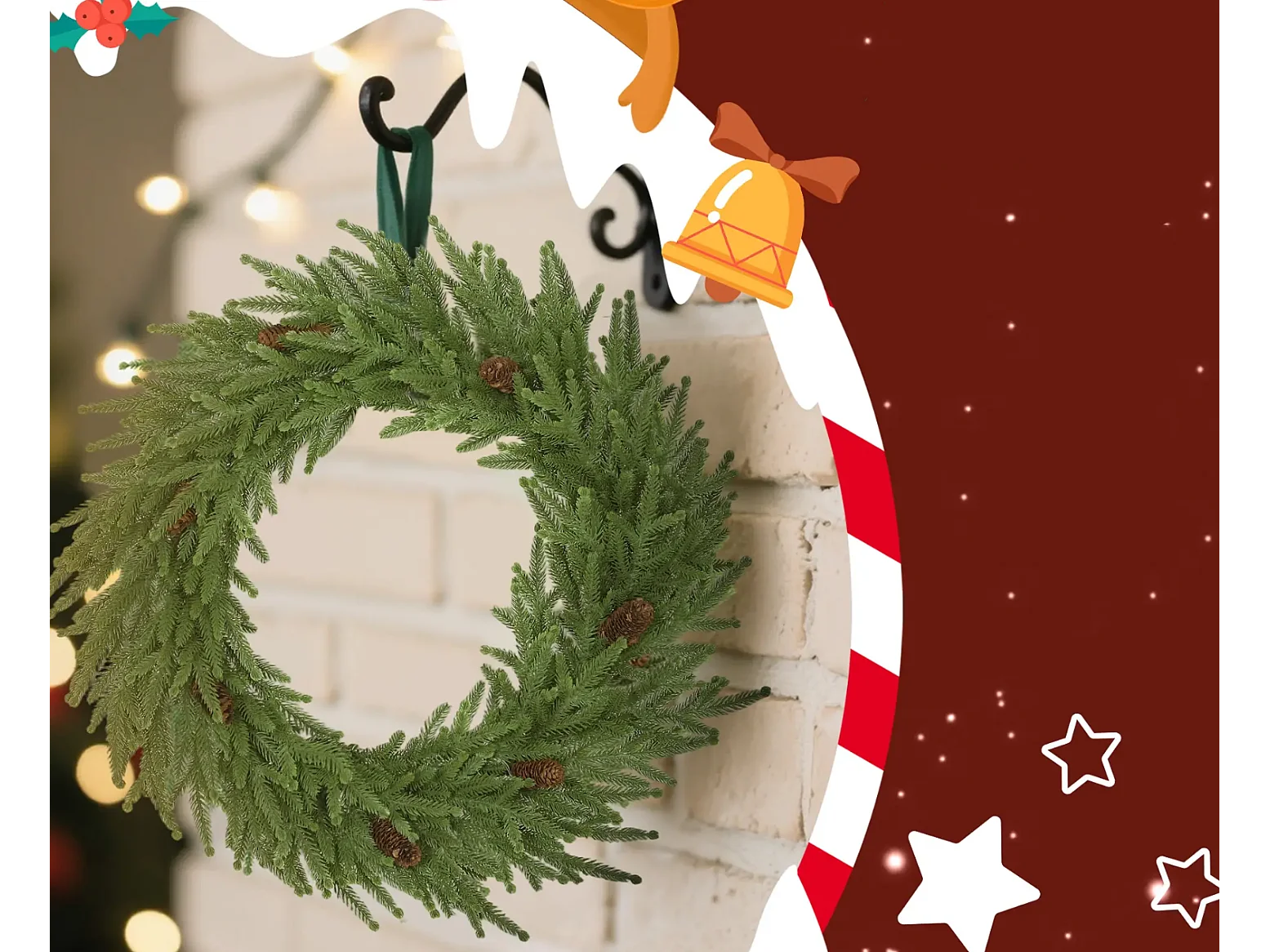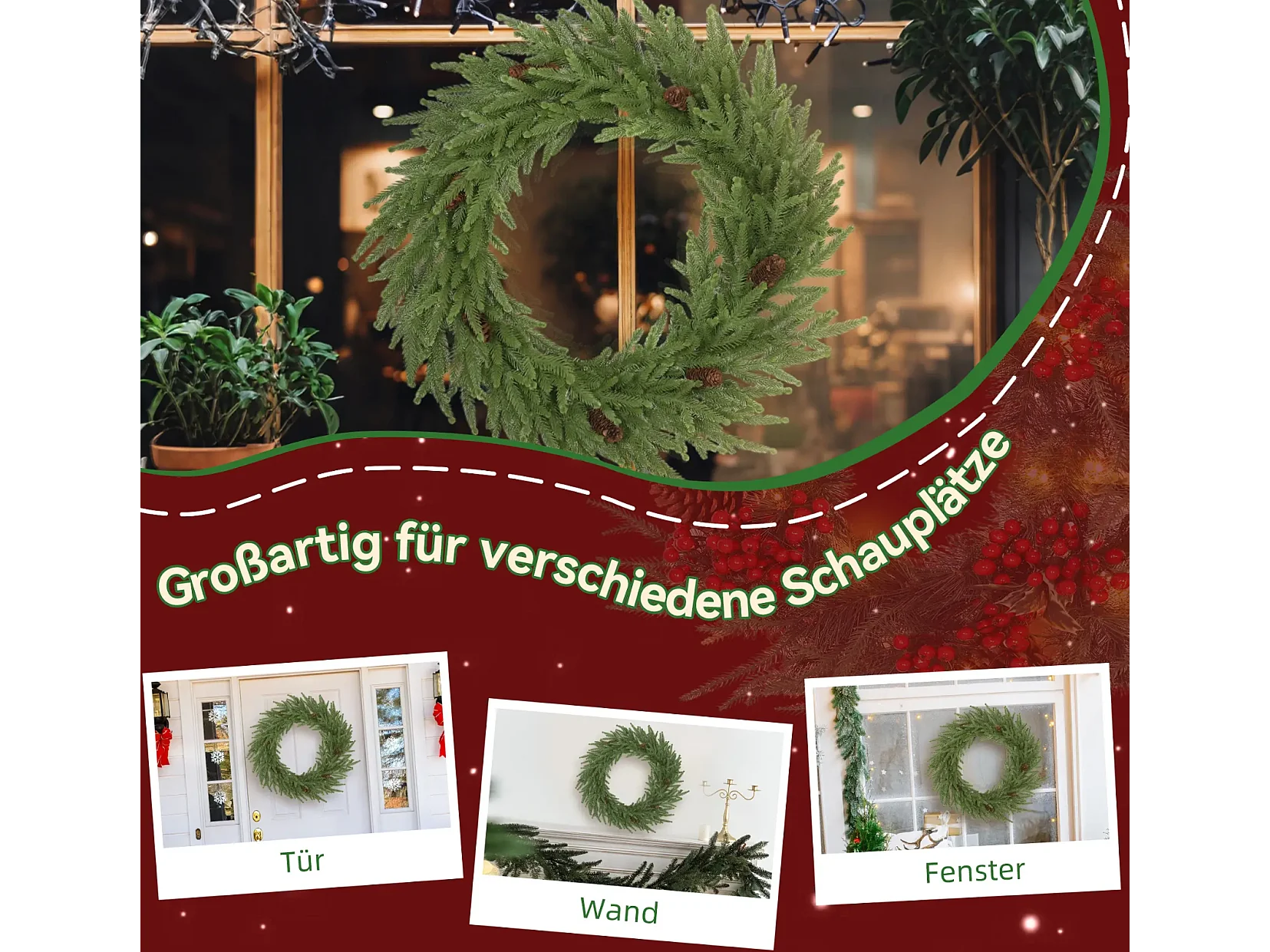 Weihnachtskranz mit Zapfen, Türkranz Künstlicher Weihnachtskranz für Tür Grün, Ø60 x 15 cm