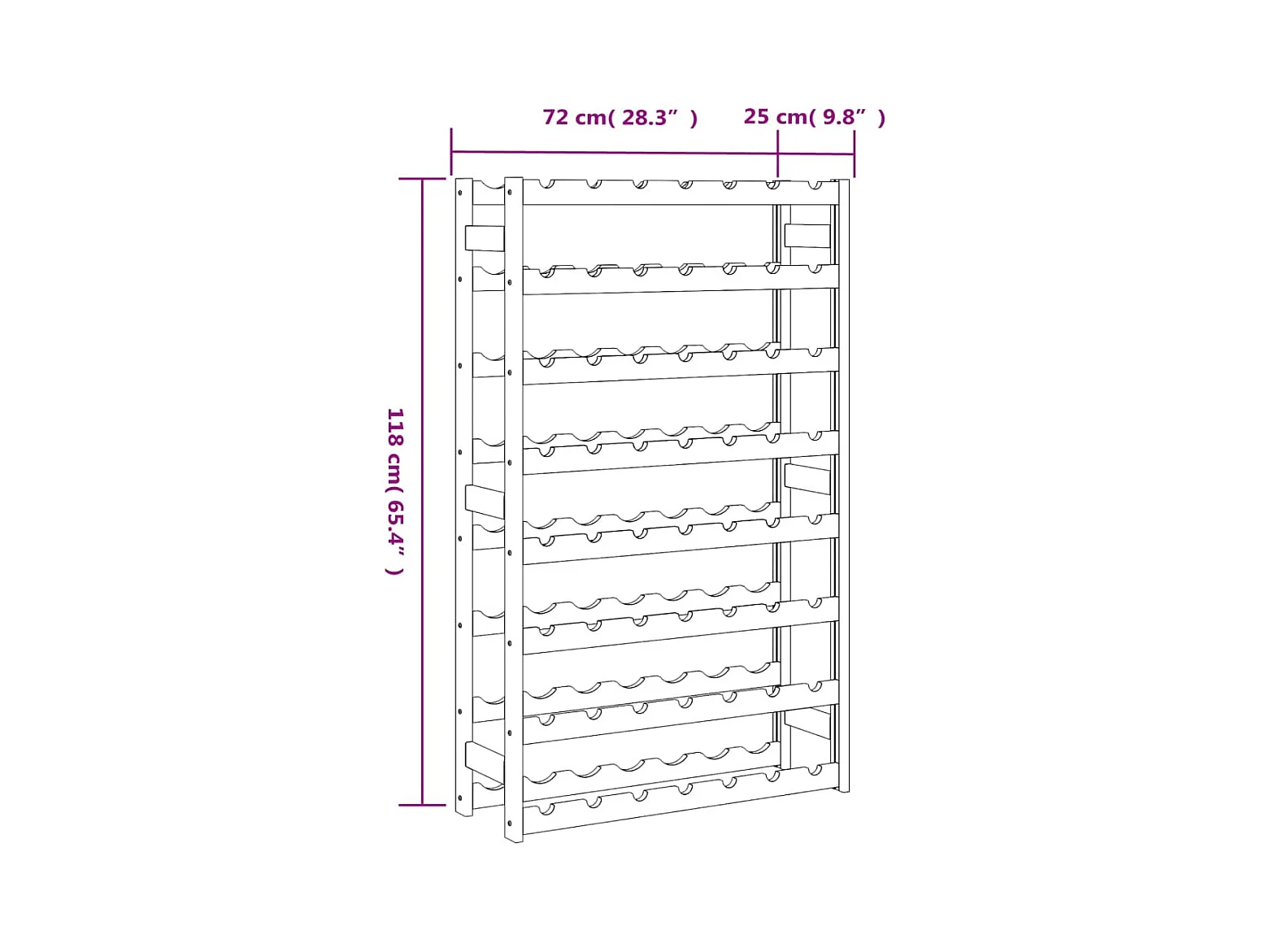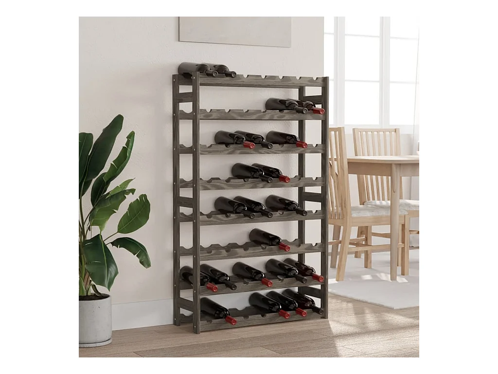 Weinregal für 56 Flaschen, graues massives Kiefernholz