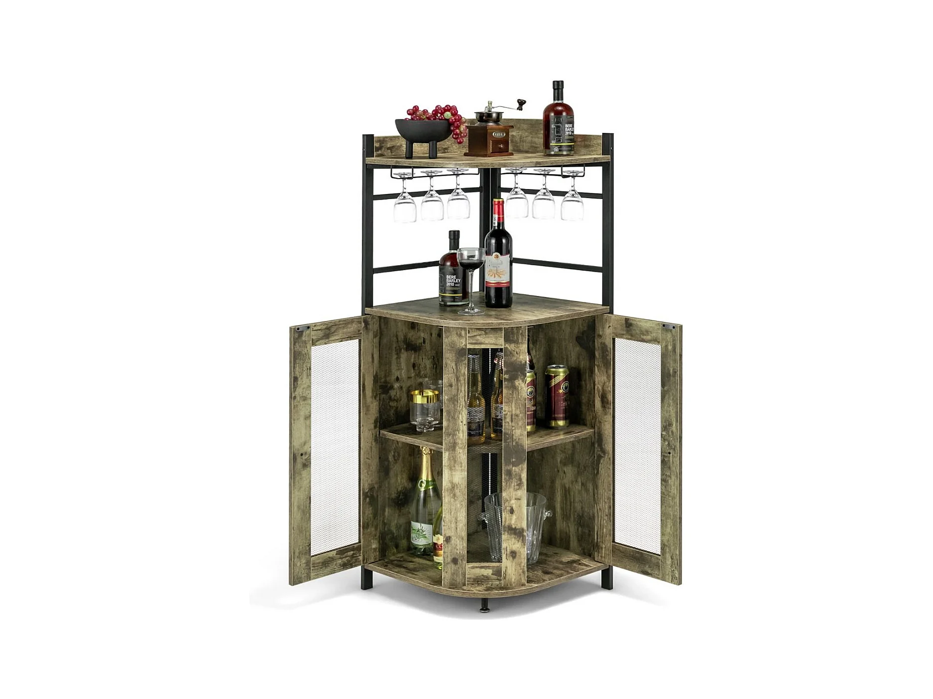 Weinschrank Industrial Barschrank mit Glashalter Küchenschrank Ecke 48 x 48 x 130 cm