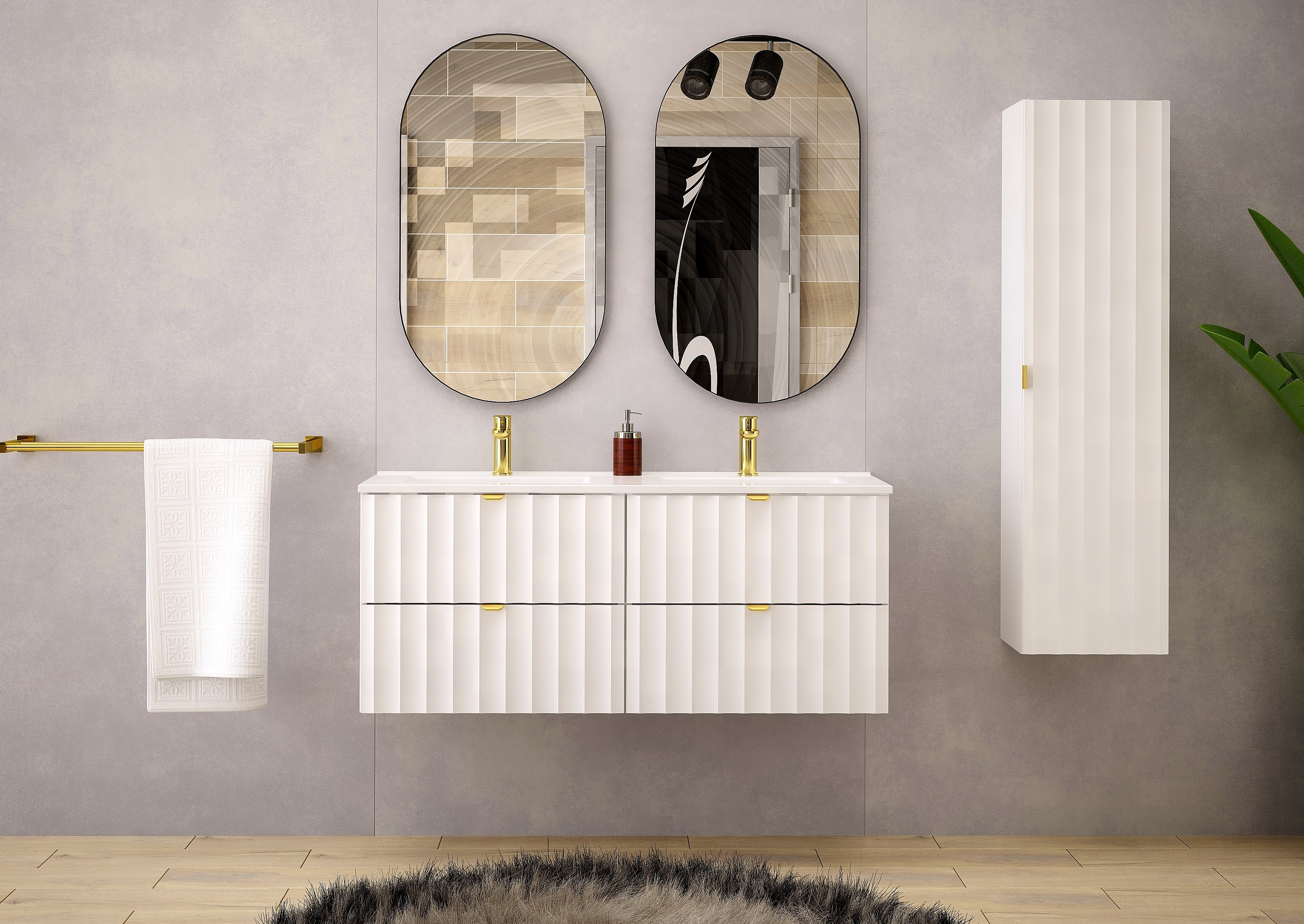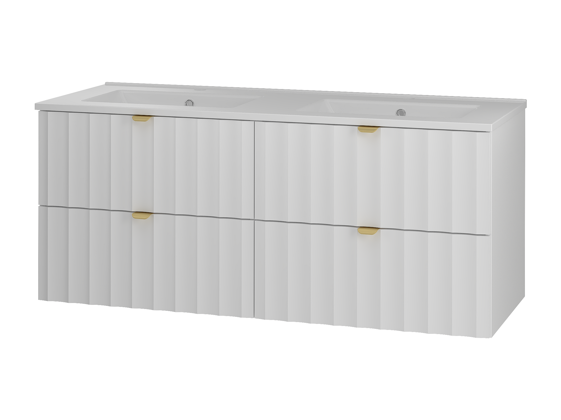 Weiß Badezimmer Set 120cm Schrank mit Waschbecken geriffelte Fronten Arcos
