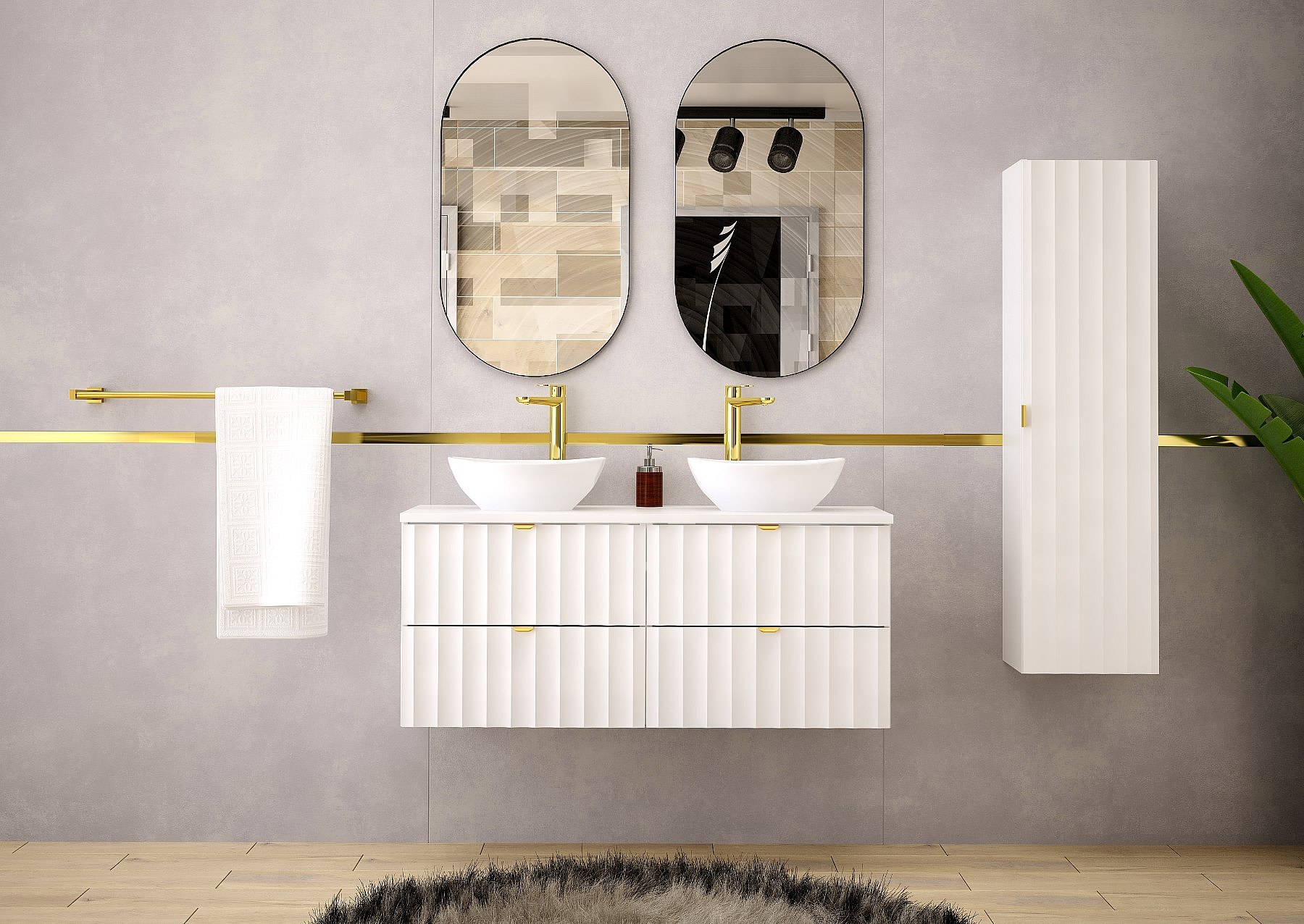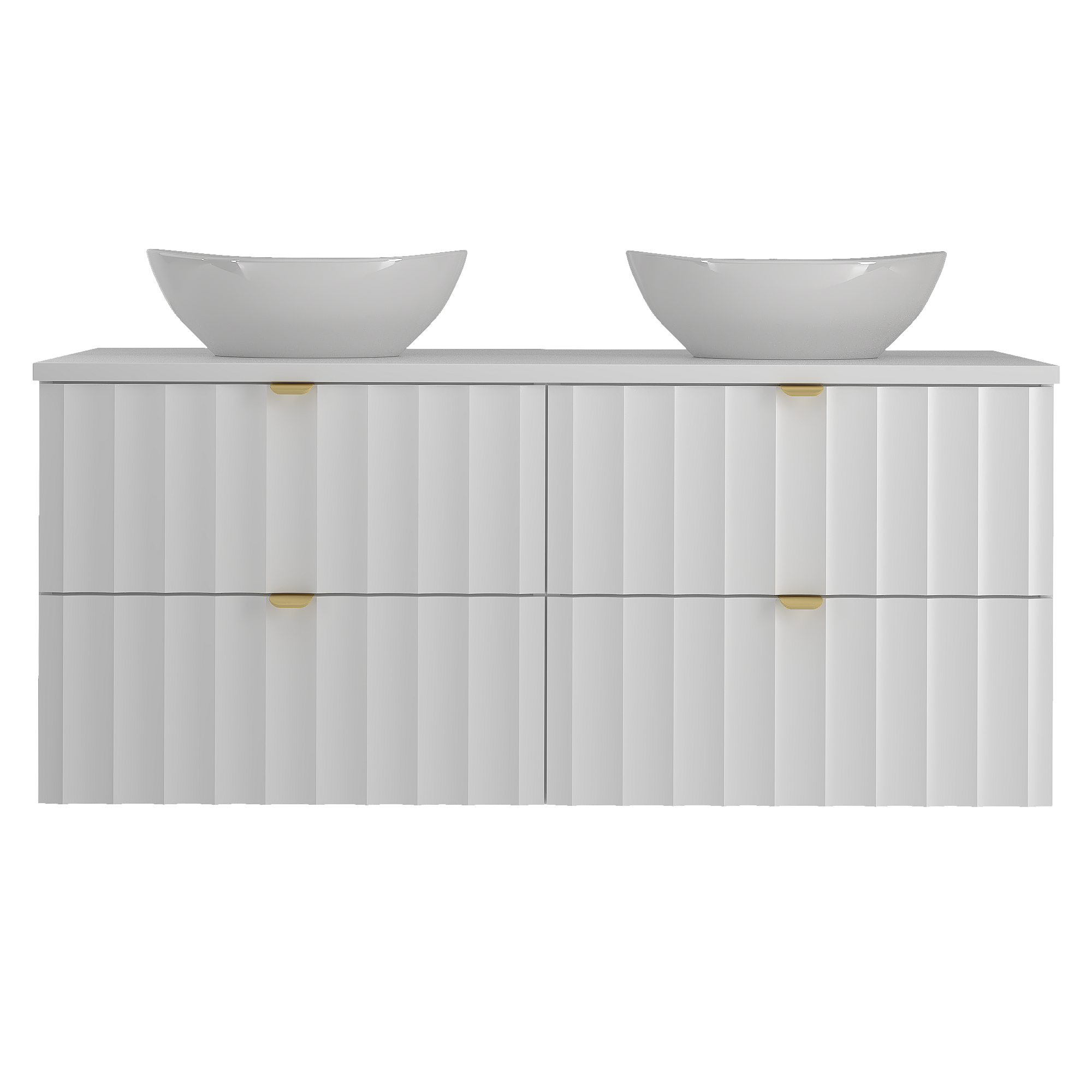 Weiß Bathroom Set 120cm Schrank mit Arbeitsplatte und Washbecken geriffelte Front Arcos