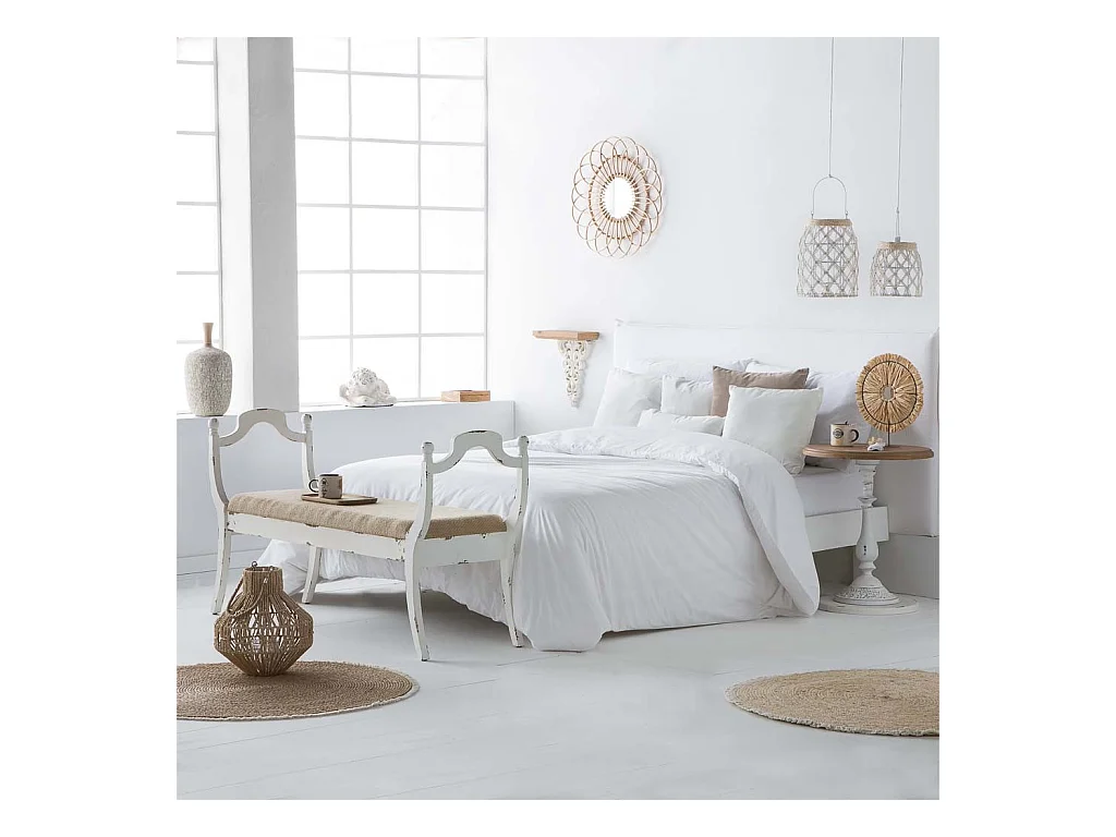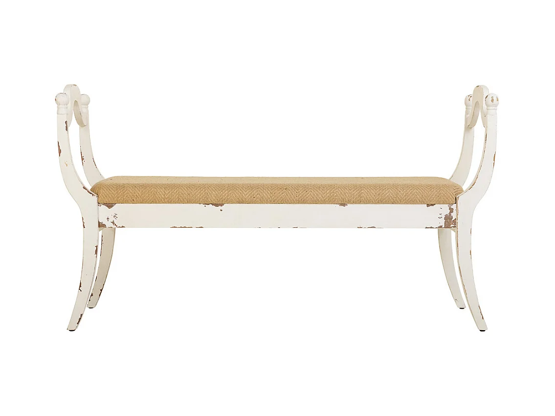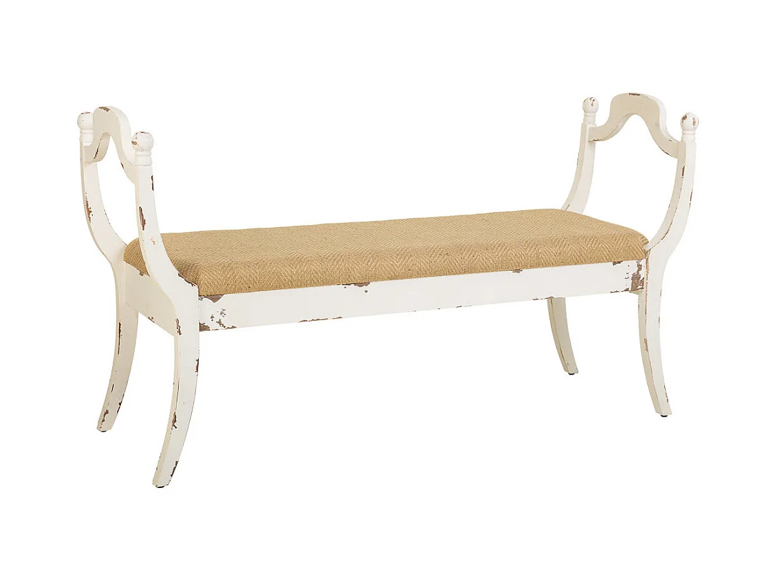 Weiß gepolsterte Holzbank 139x45,5x78h cm