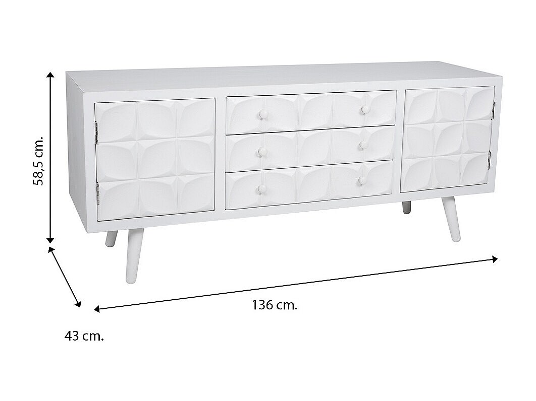 Weiß lackierter Holzunterschrank 136x43x58,5h cm
