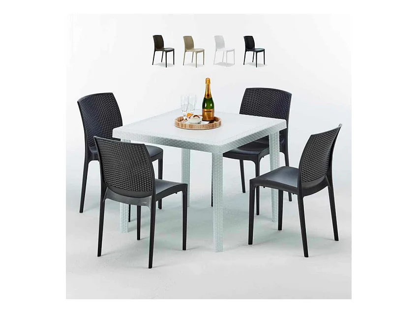 Weiß Quadratisch Tisch und 4 Stühle Farbiges Polypropylen-Außenmastenset Grand Soleil Boheme Love - Schwarz