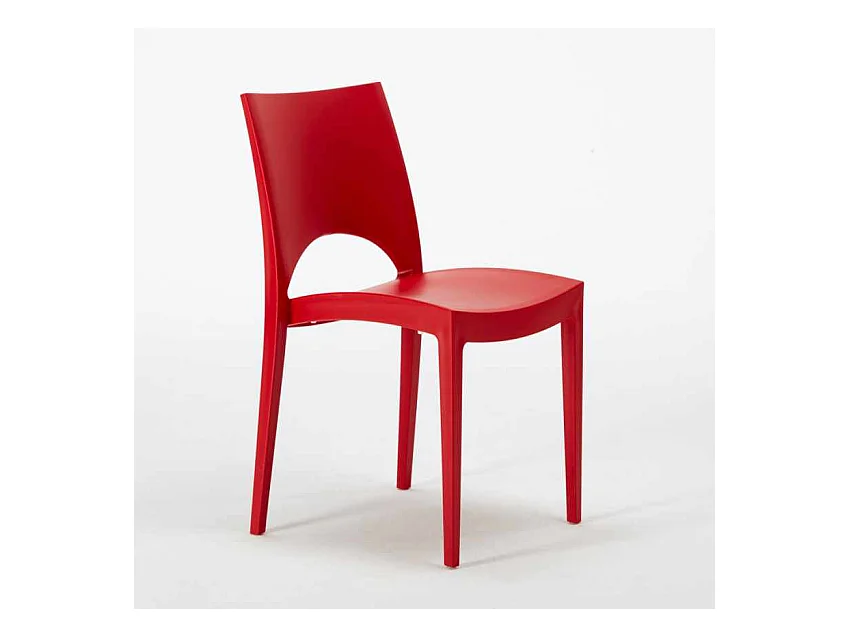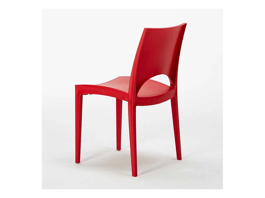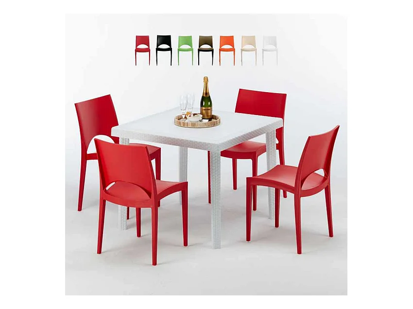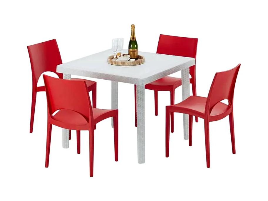 Weiß Quadratisch Tisch und 4 Stühle Farbiges Polypropylen-Außenmastenset Grand Soleil Paris Love - Rot
