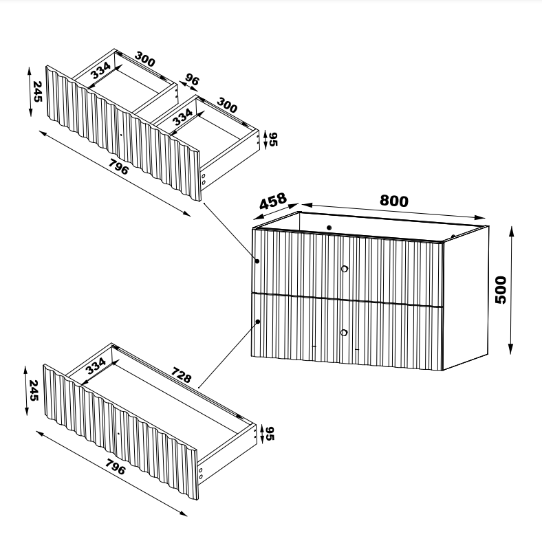 - Fronten aus hochwertigem MDF sind mit vertikal gefrästen Rillen verziert, die ihnen einen einzigartigen Charakter verleihen.
