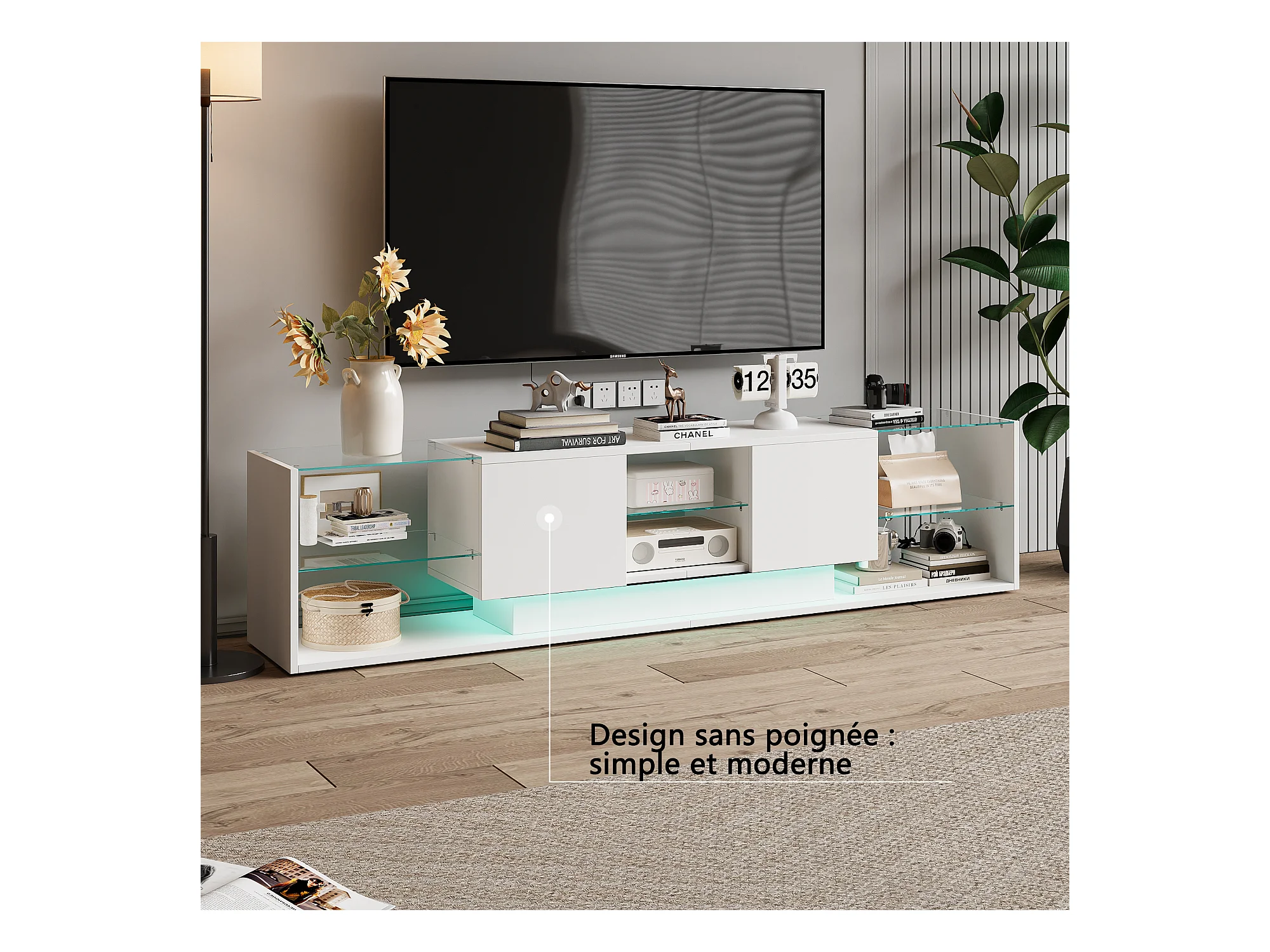 Weißer 200 cm LED-TV-Hängeschrank mit modernem Design, gehärtetem Glas und RGB-Beleuchtung