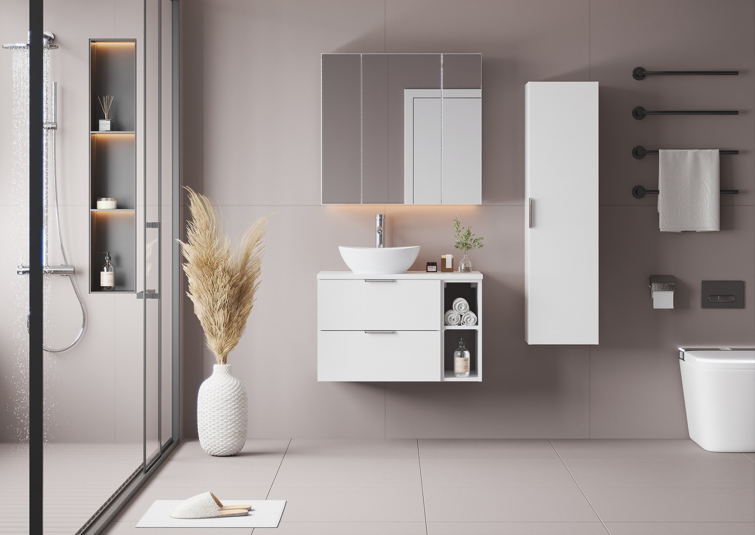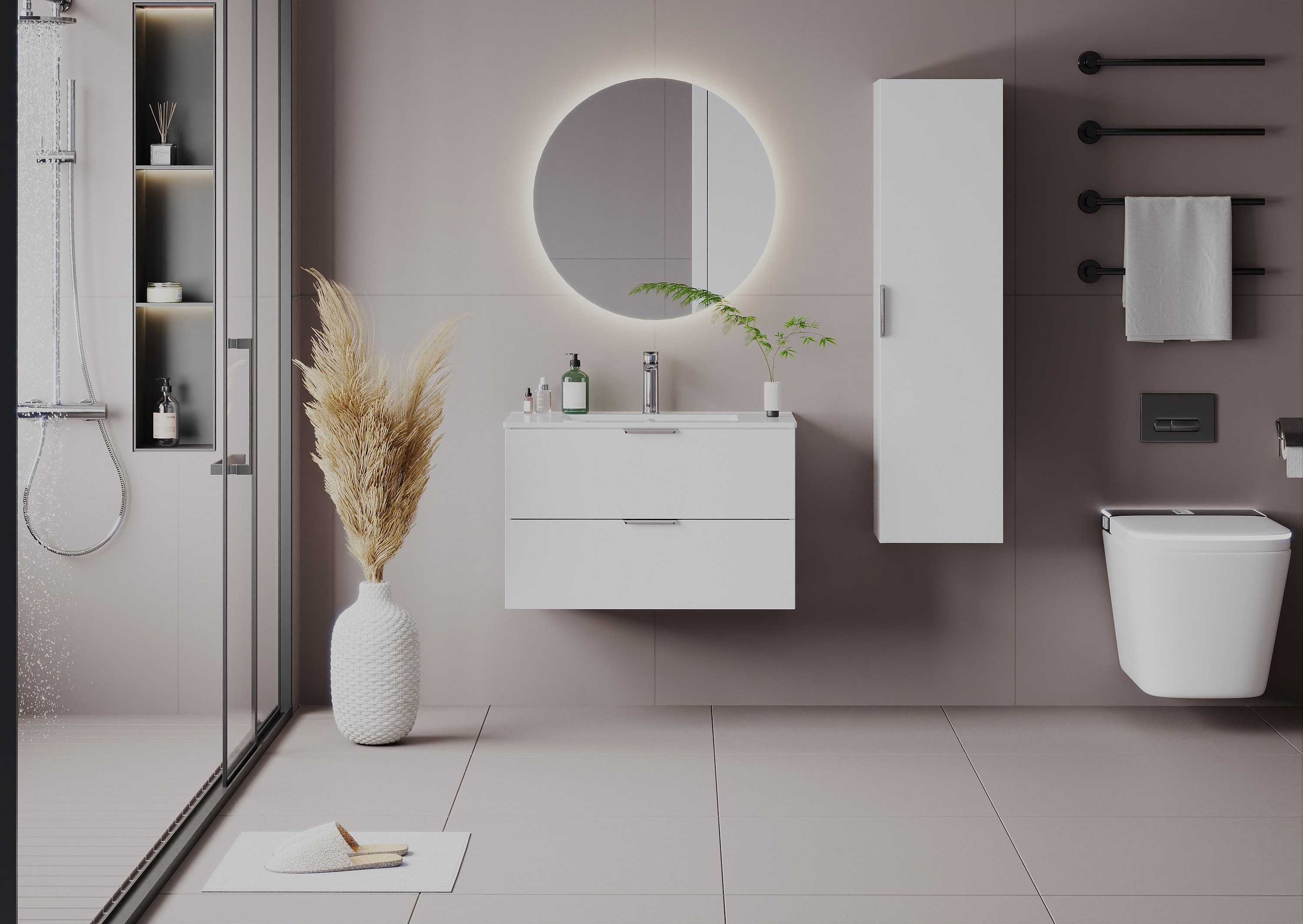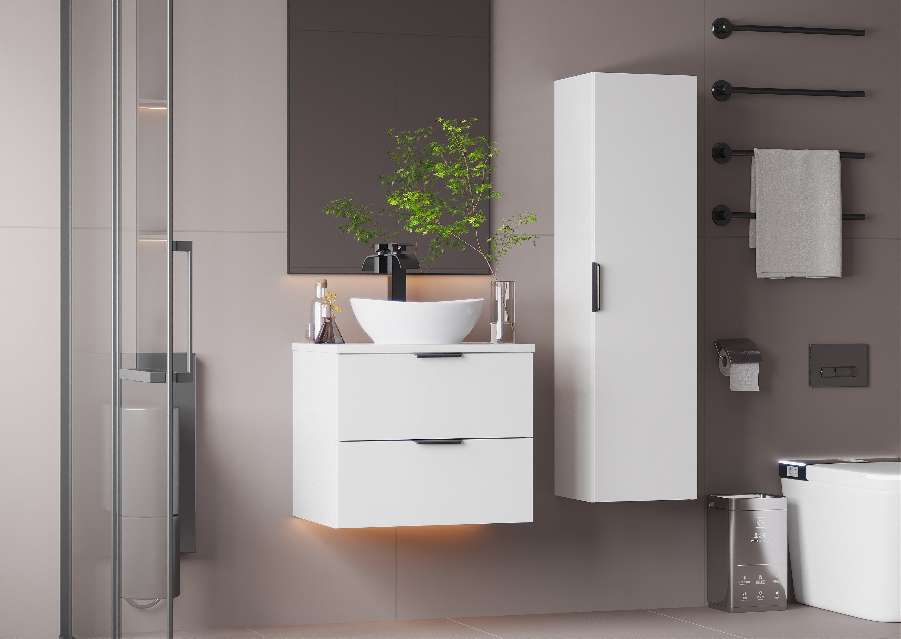 Weißer Badezimmerschrank, Hochschrank 1 Tür, Pile
