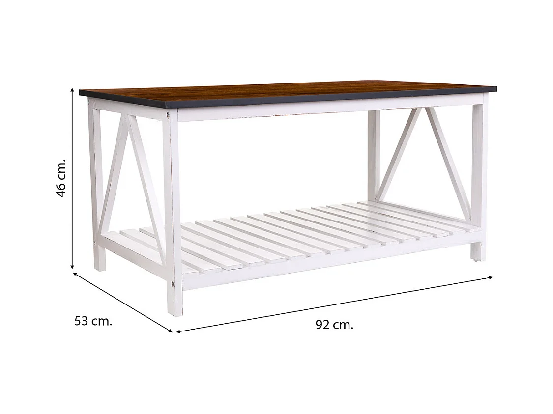 Weißer Couchtisch aus Holz 92x53x46h cm