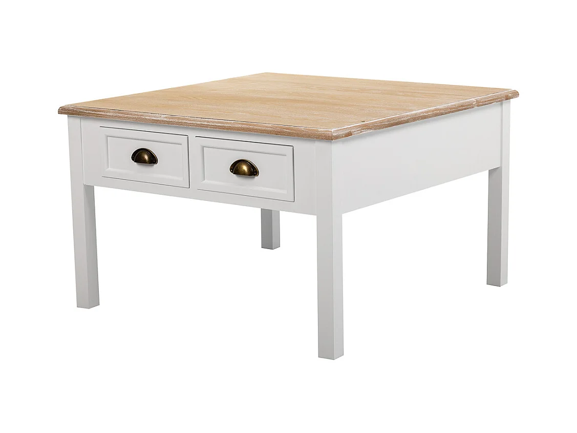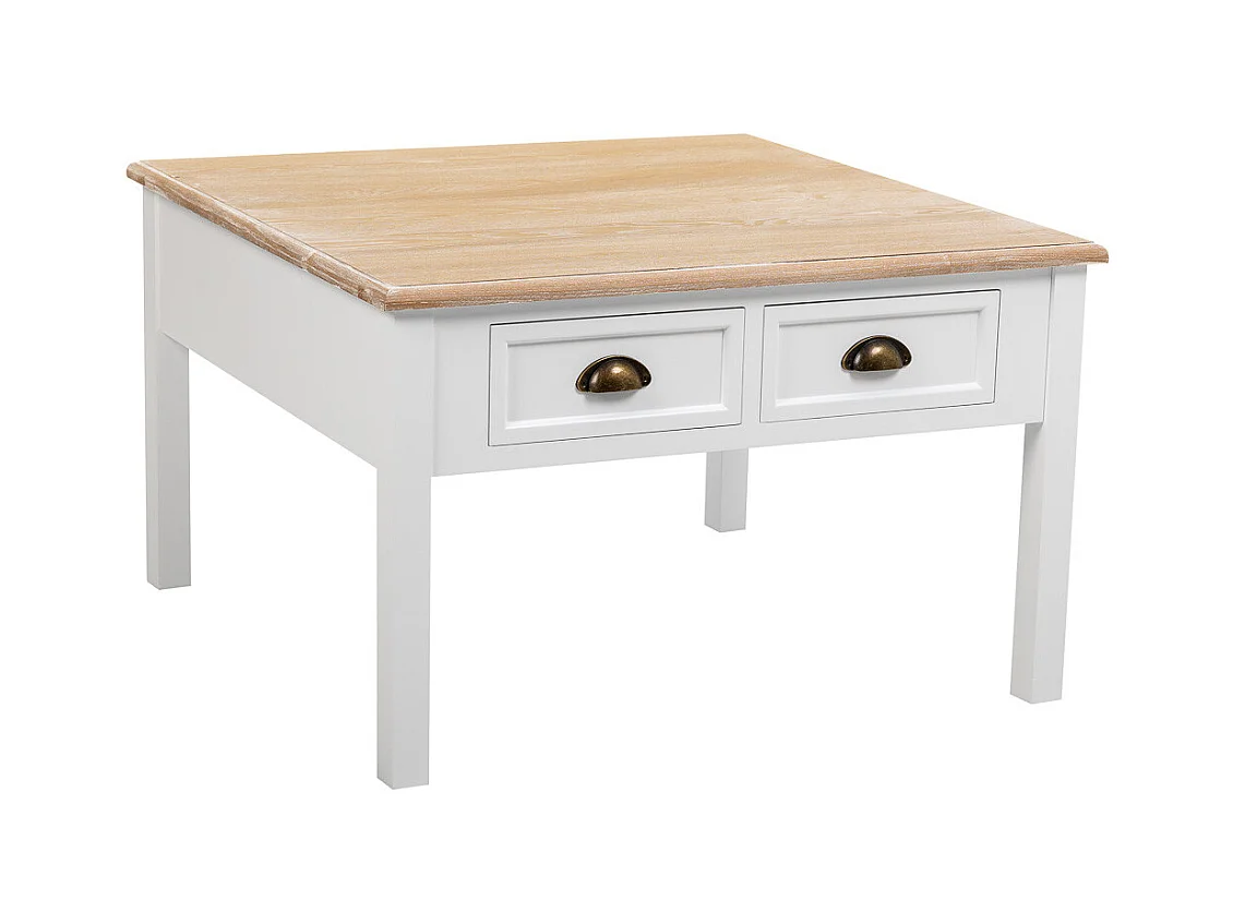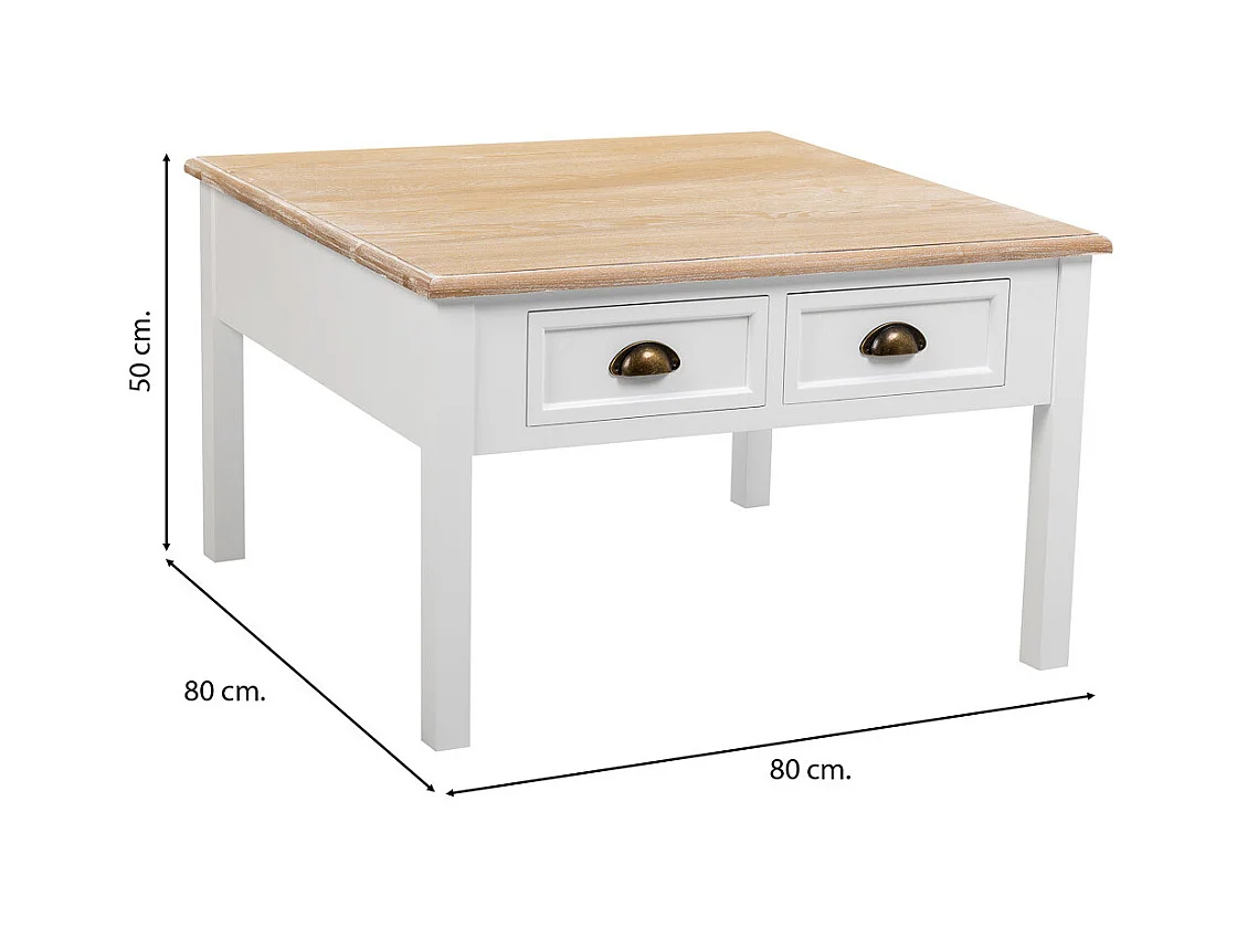 Weißer Couchtisch aus Holz mit 2 Schubladen 80x80x50h cm