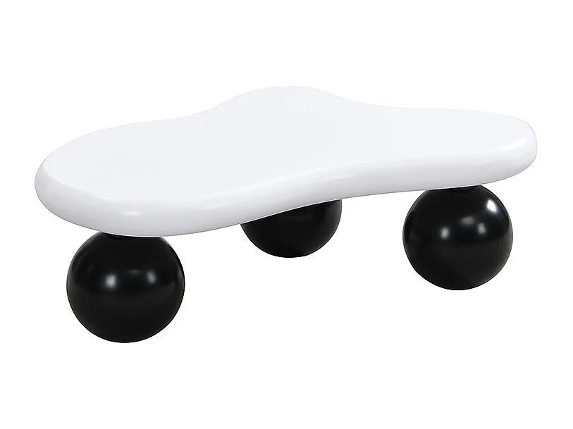 Weißer Couchtisch – Couchtisch mit LED-Leuchten und schwarzen runden Beinen – wolkenförmiges design – für wohnzimmer und kinderzimmer