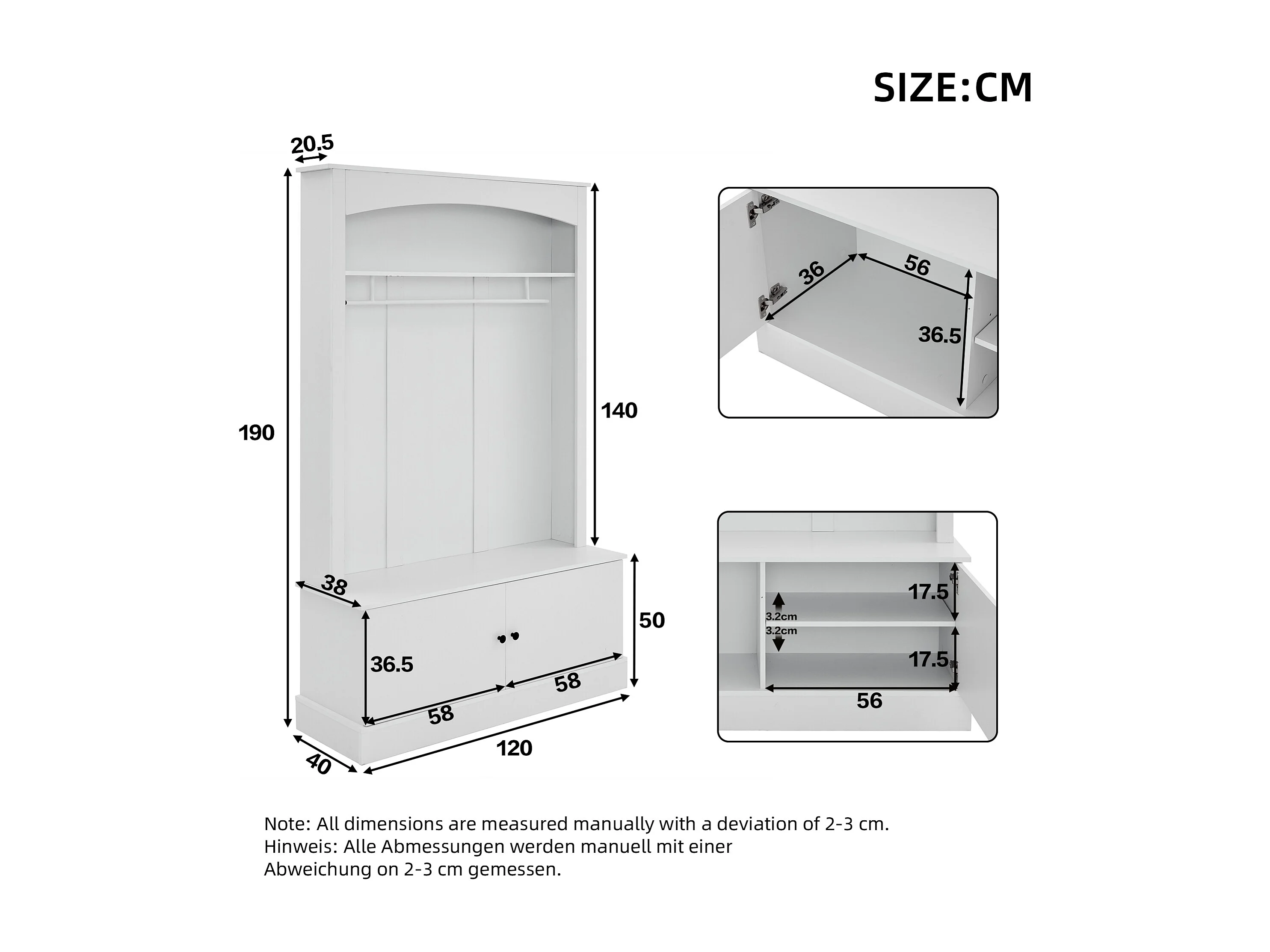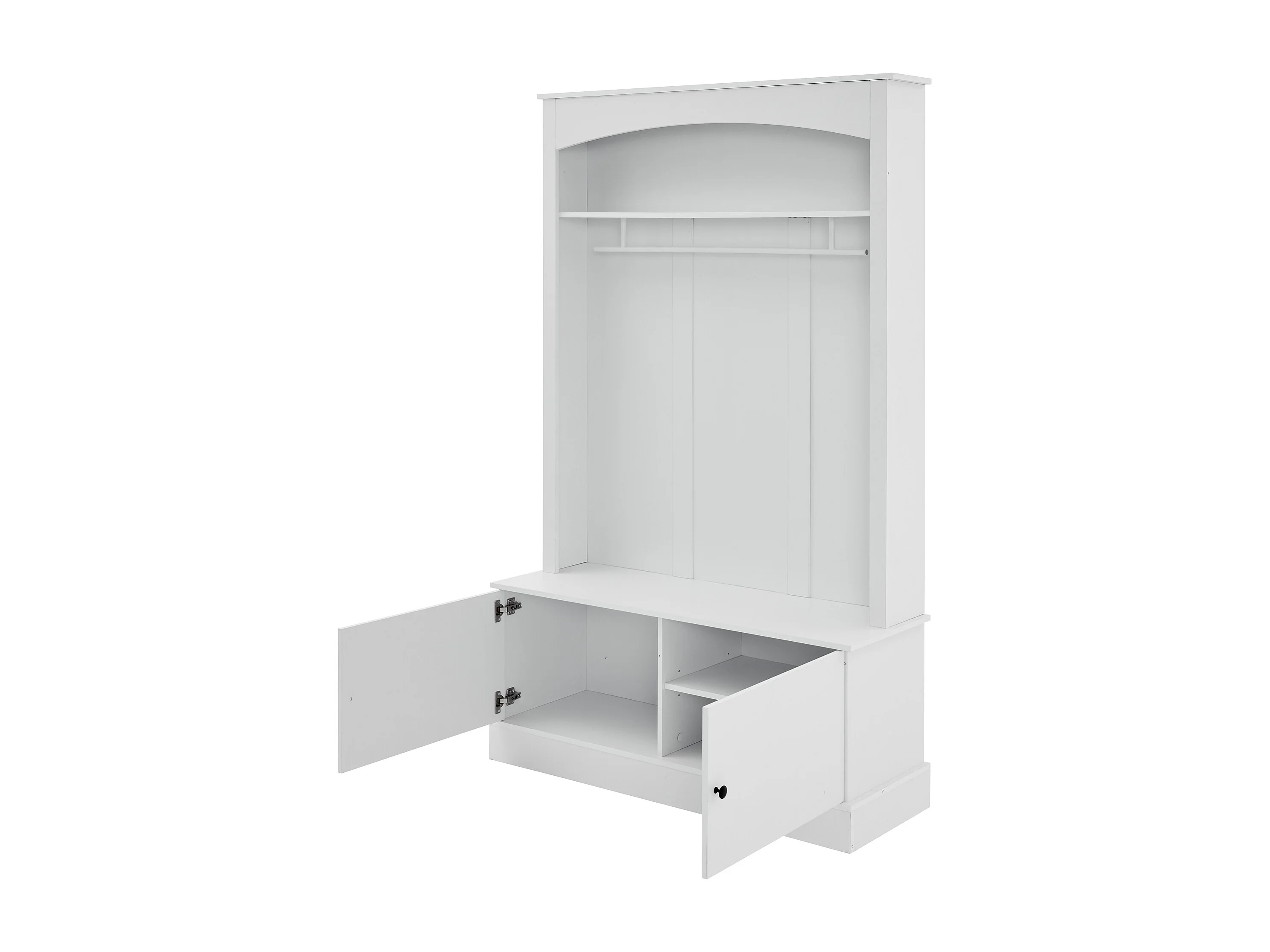 Weißer Garderobenständer mit Stauraum und verstellbaren Regalen – Kompakte Flurgarderobe