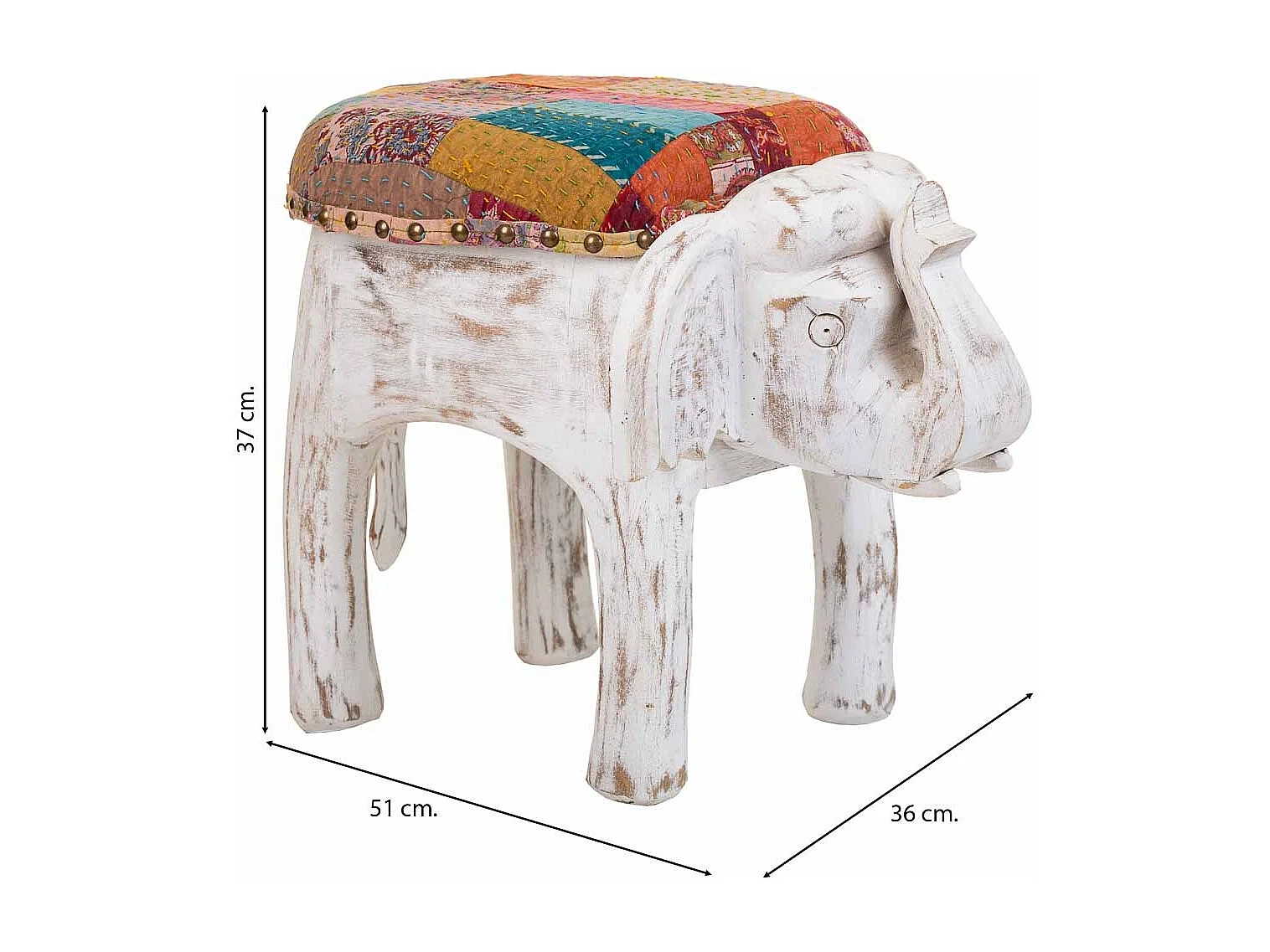 Weißer Holzhocker 36x51x37h cm