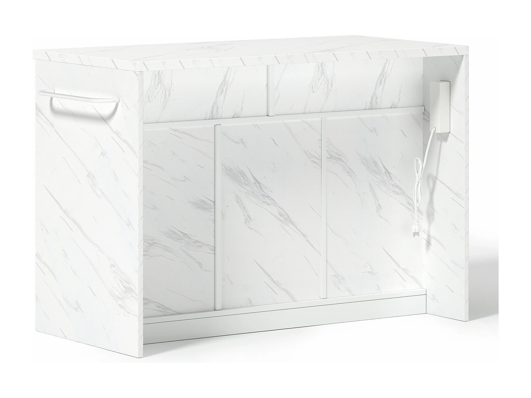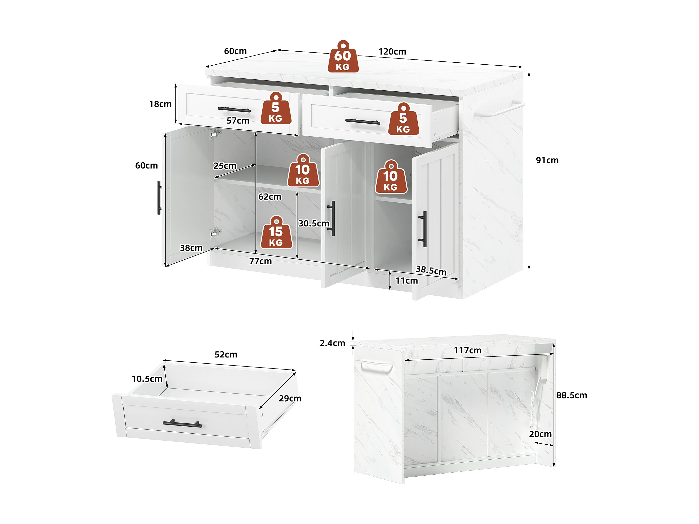 Weißer Küchenwagen – Kücheninsel mit 2 Schubladen und 3 Türen – Handtuchhalter und 1,5 m langes Stromkabel