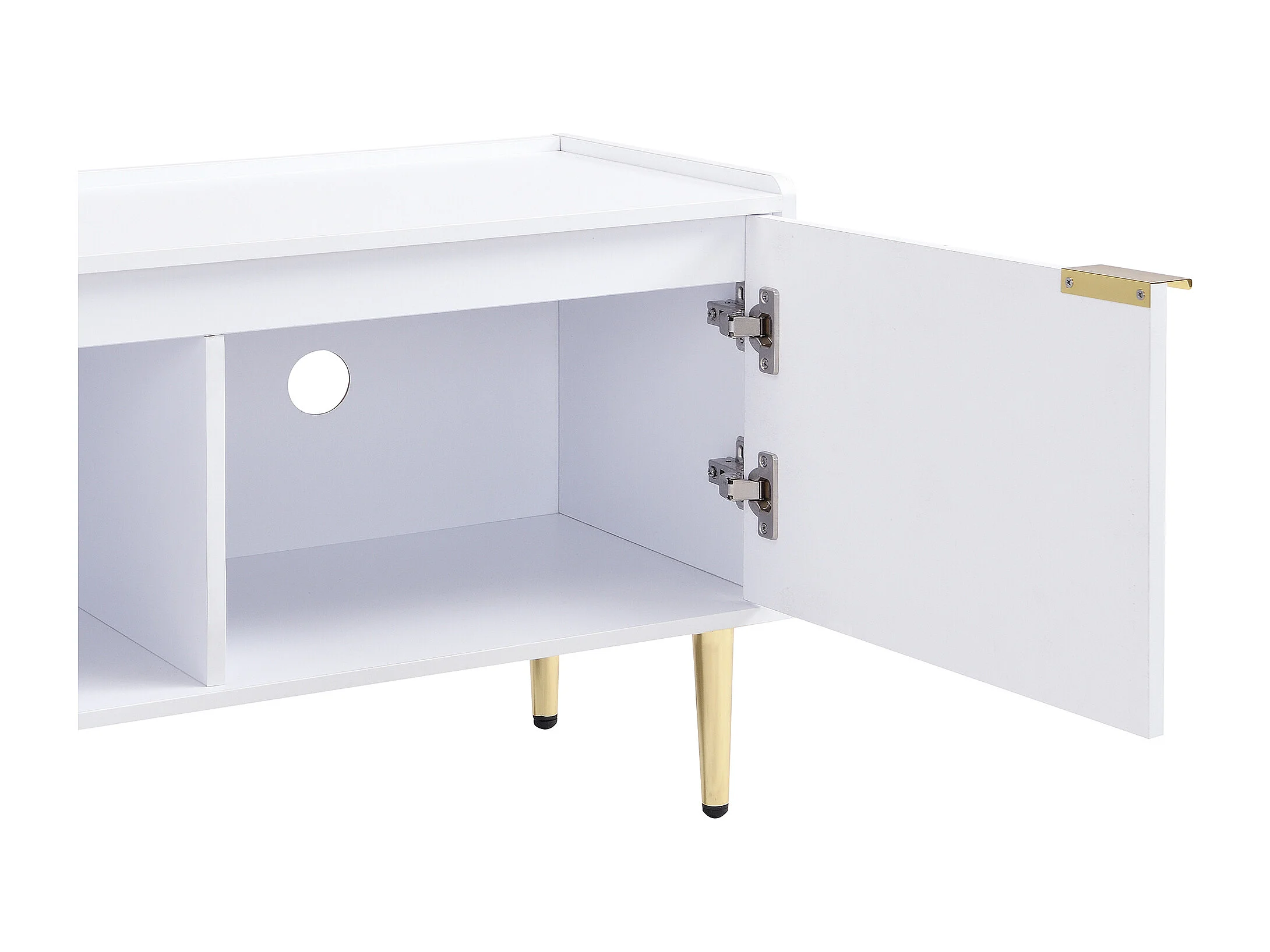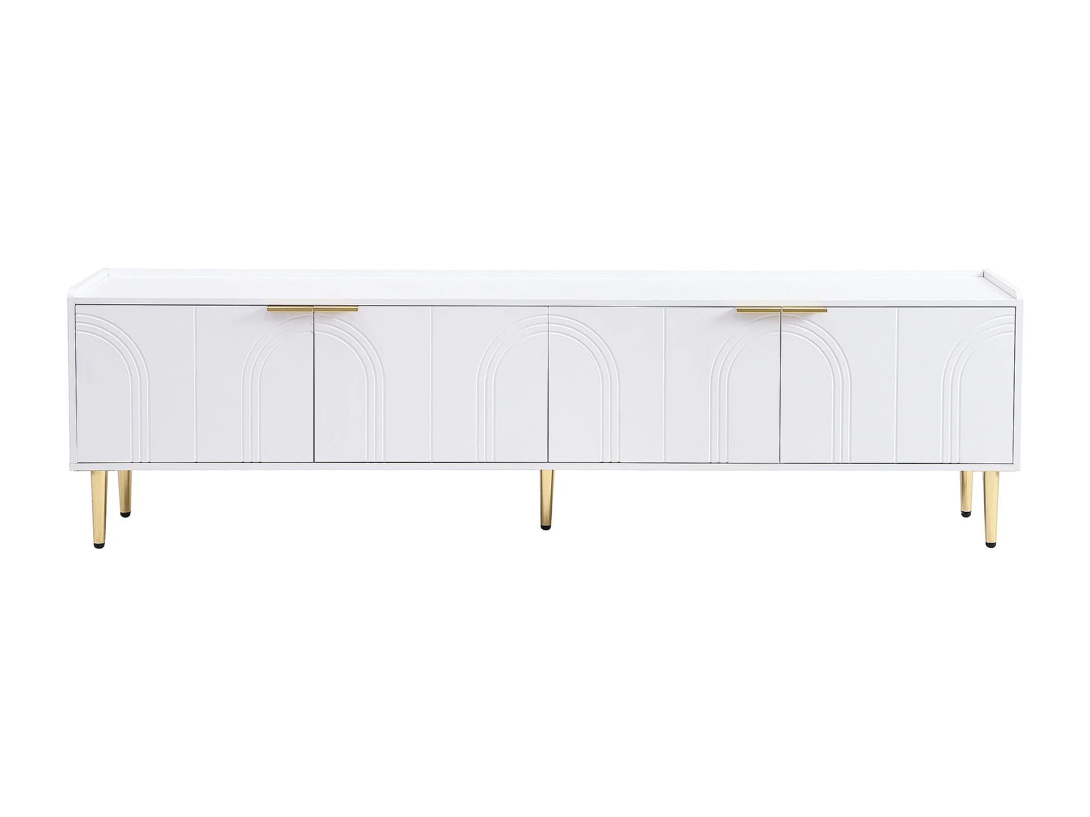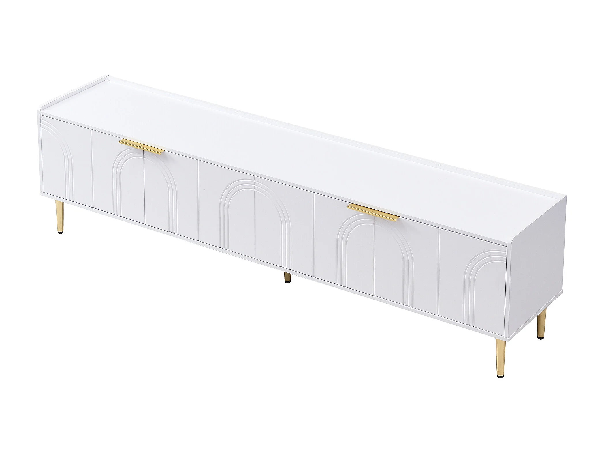 Weißer TV-Ständer, modernes TV-Möbel mit 4 strukturierten Türen und goldenen Beinen – für Wohnzimmer und Büro