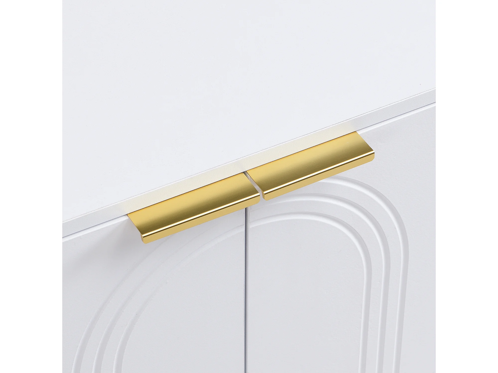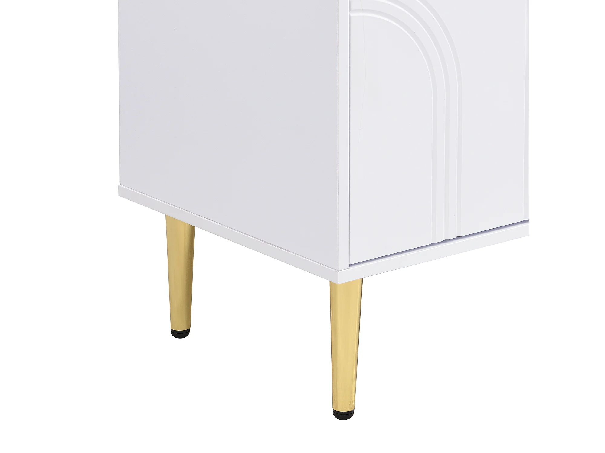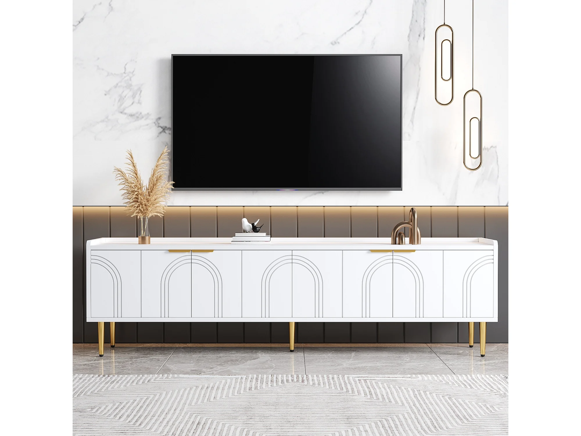 Weißer TV-Ständer, modernes TV-Möbel mit 4 strukturierten Türen und goldenen Beinen – für Wohnzimmer und Büro