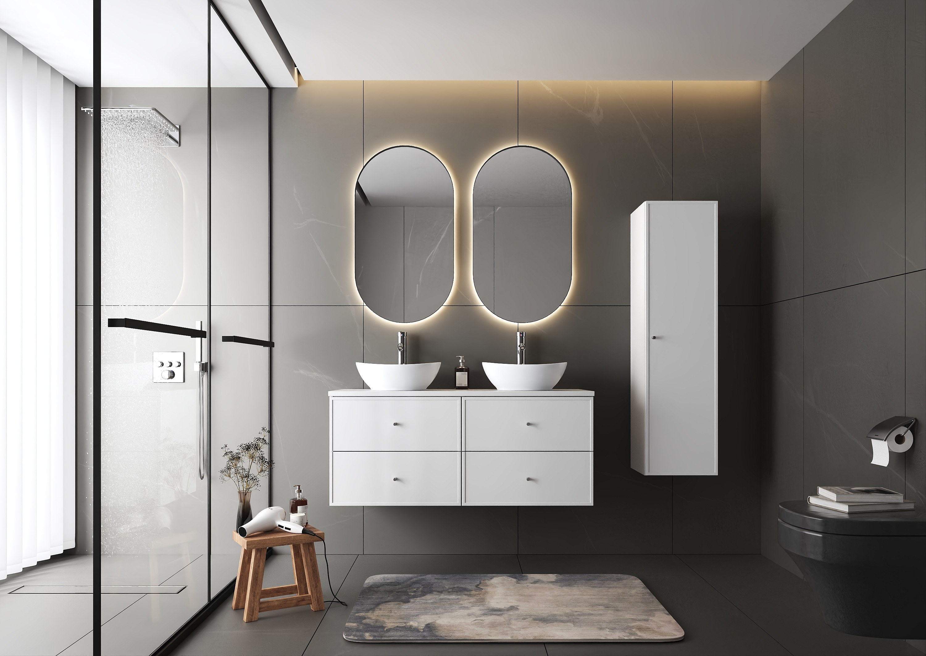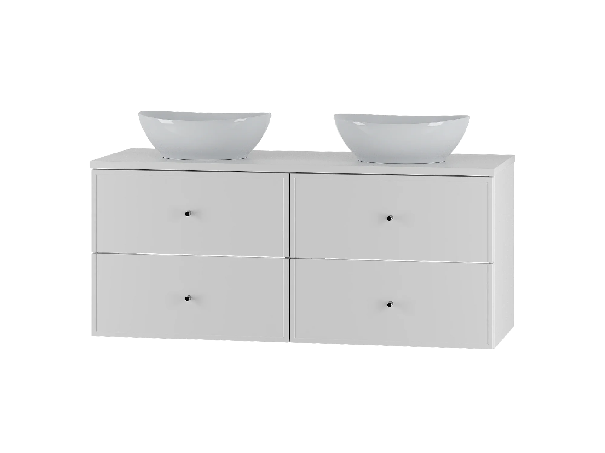 Weißes Badezimmer-Set 120 cm Schrank mit Arbeitsplatte und Waschbecken Marco