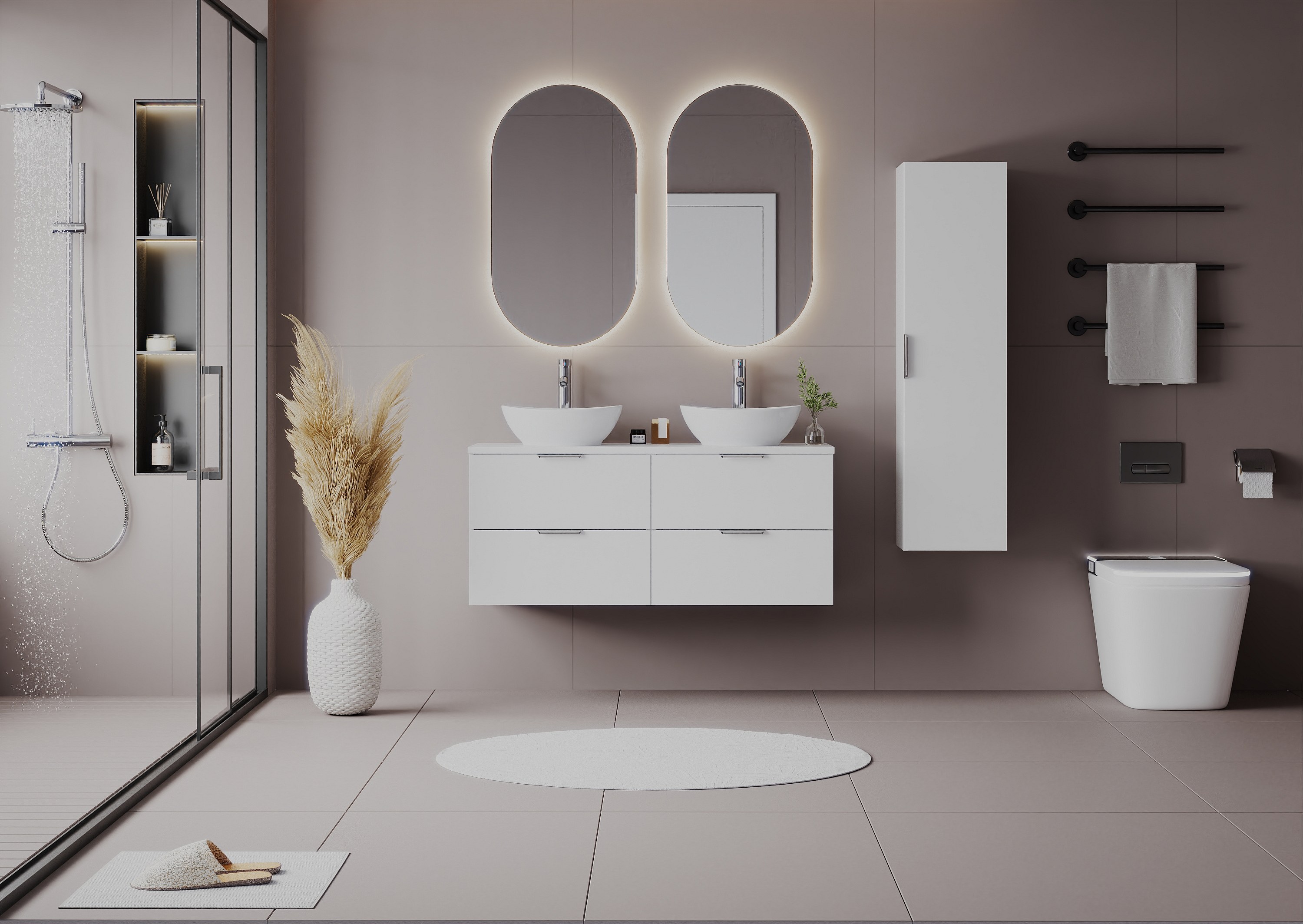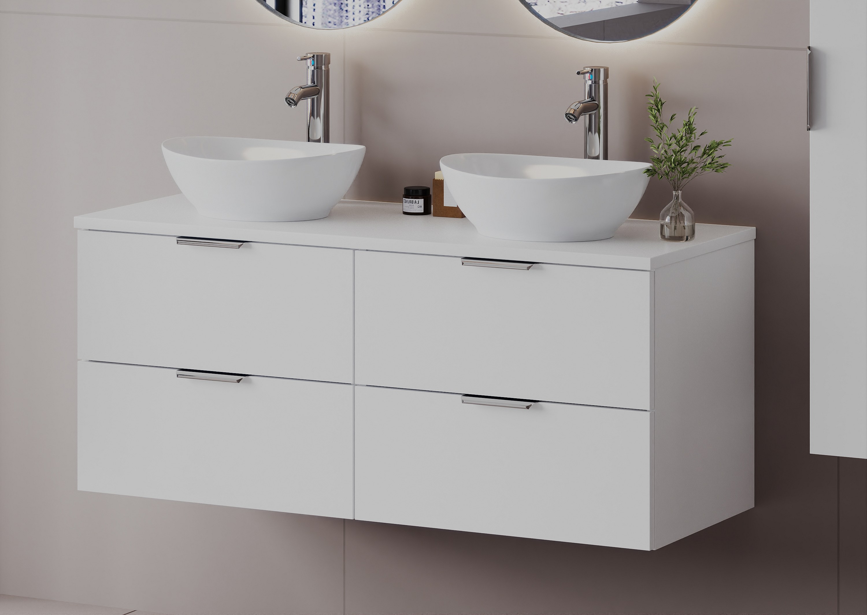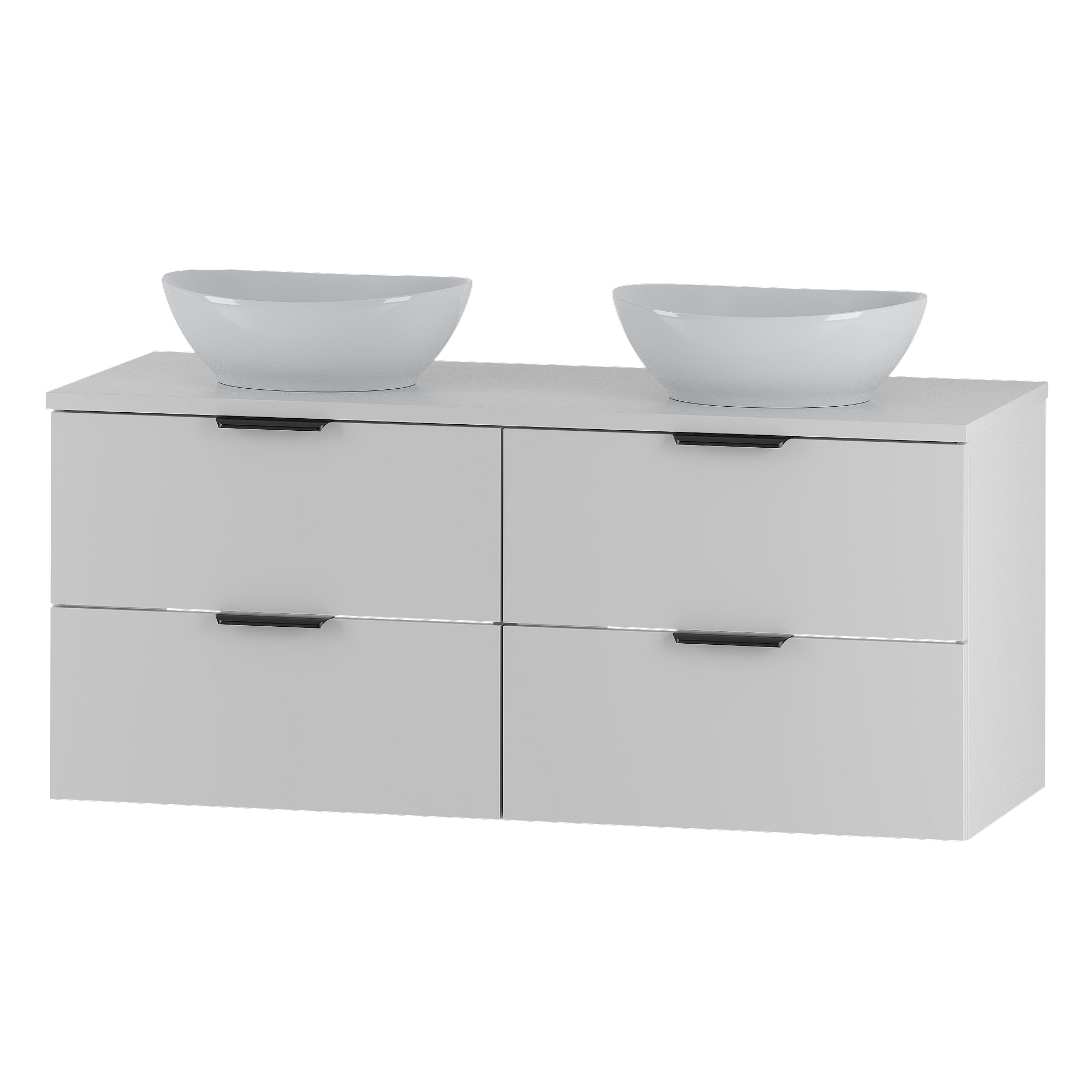 Weißes Badezimmer-Set 120 cm Schrank mit Arbeitsplatte und Waschbecken Pile