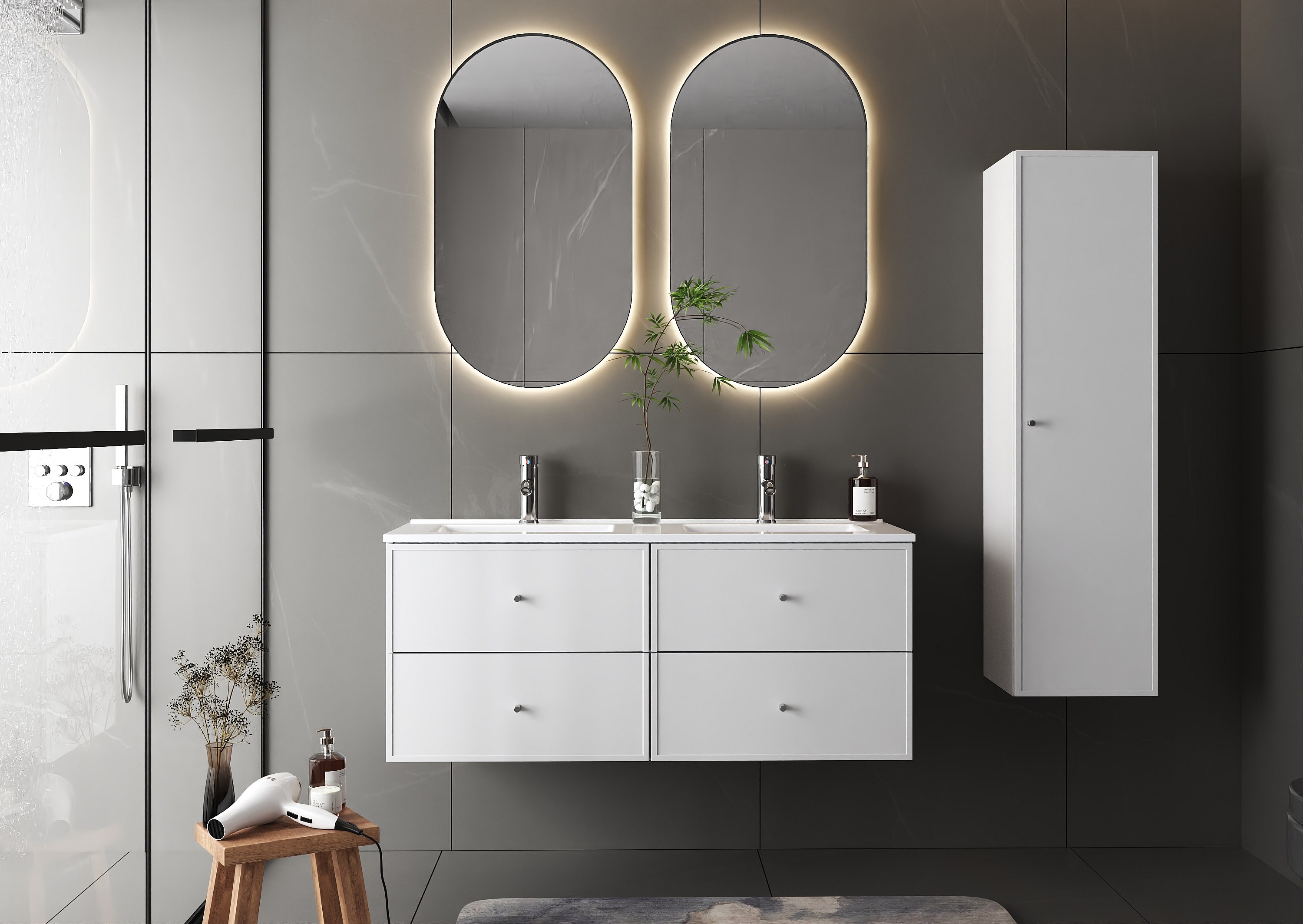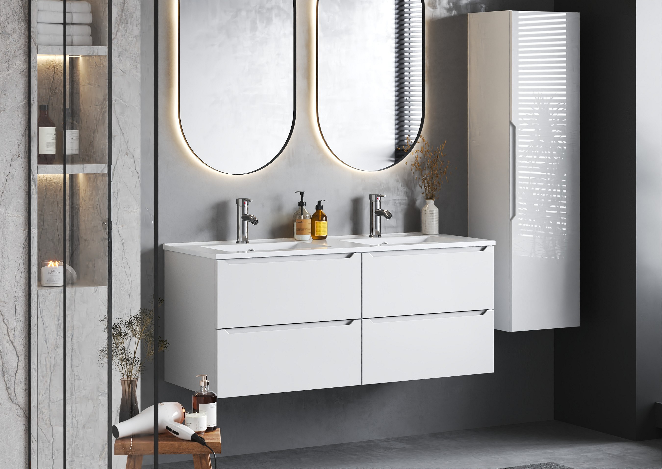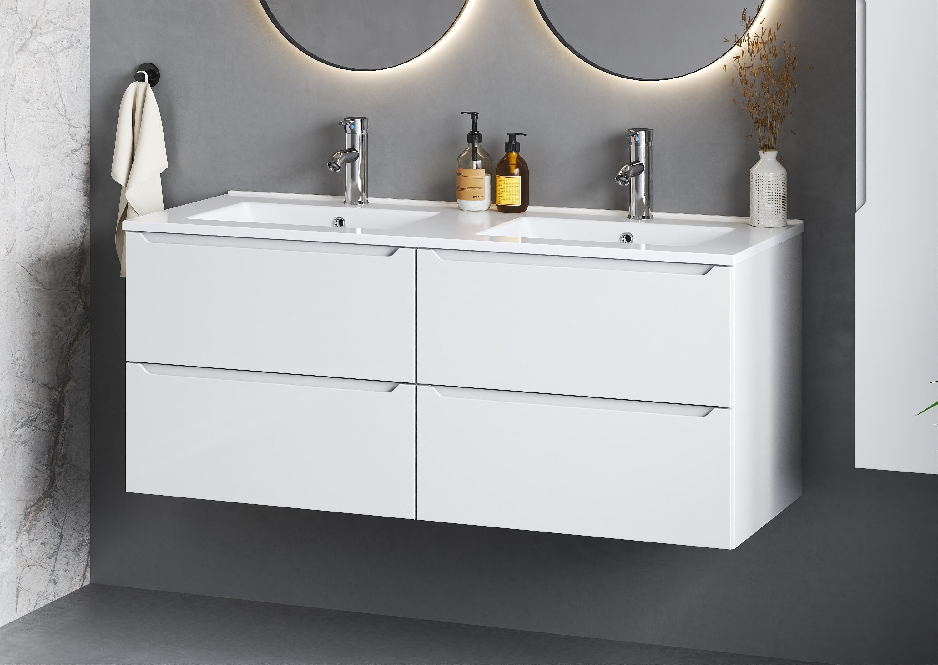 Weißes Badezimmer-Set 120 cm Schrank mit Waschbecken Etna