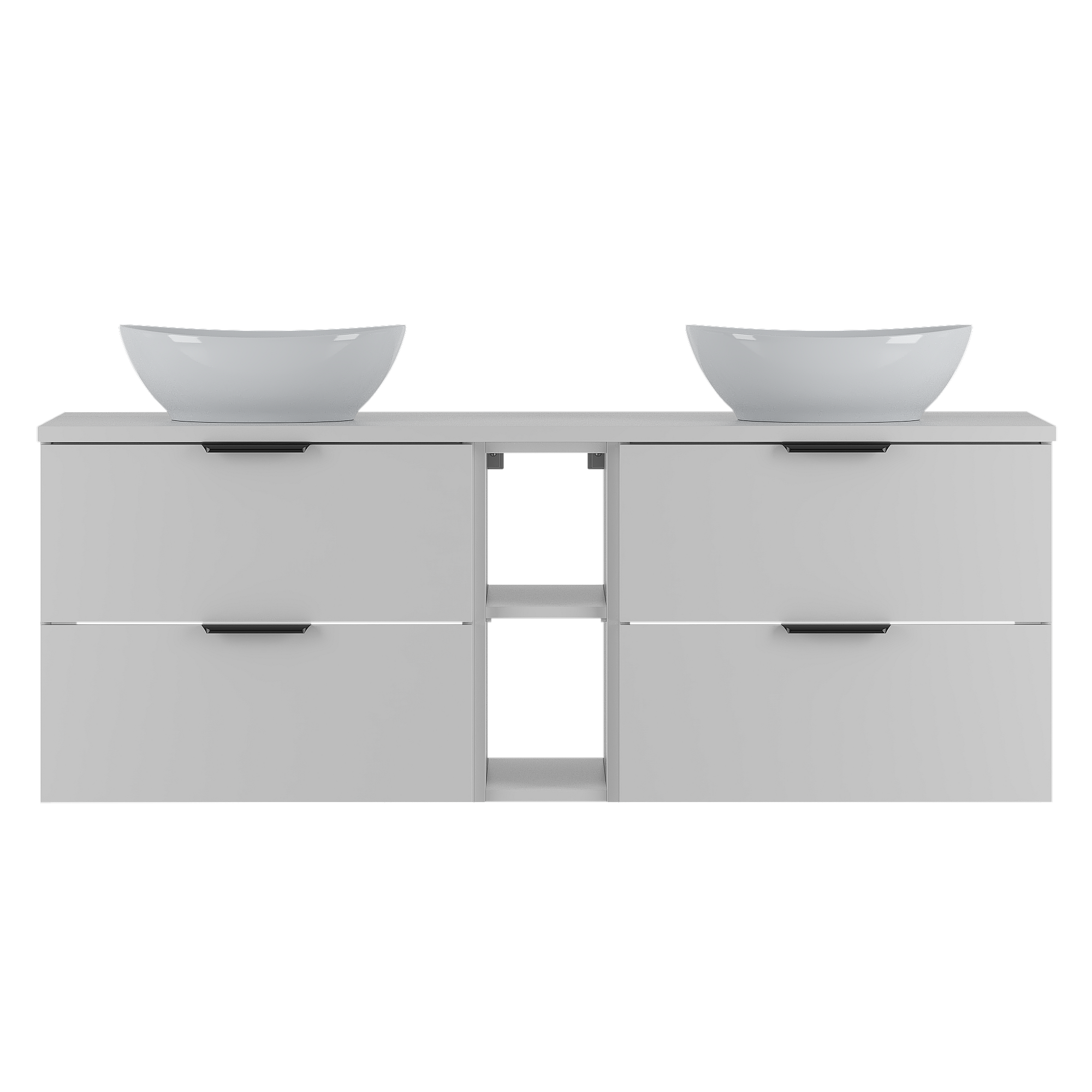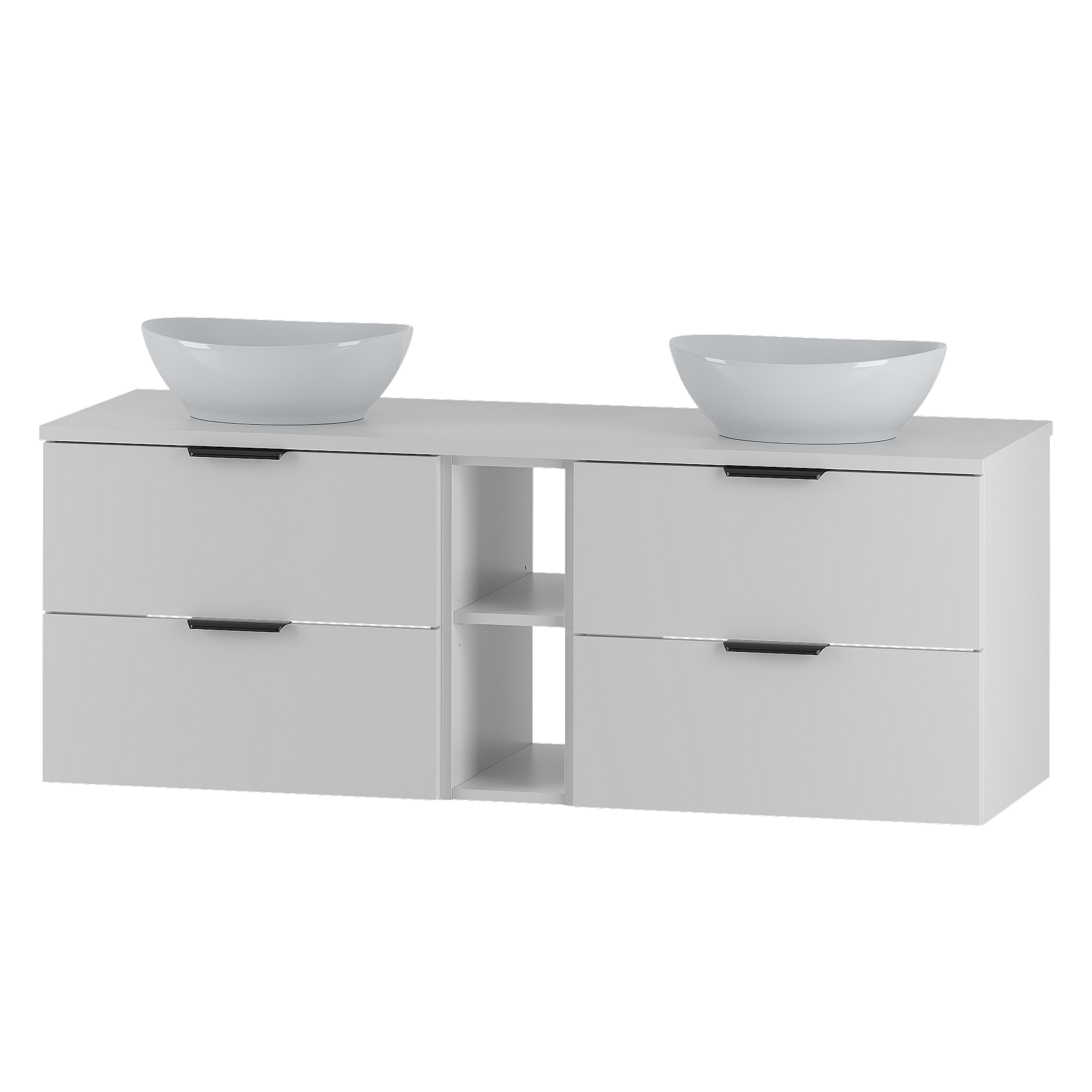 Weißes Badezimmer-Set 140 cm Schrank Regal Waschtischplatte Waschbecken Pile