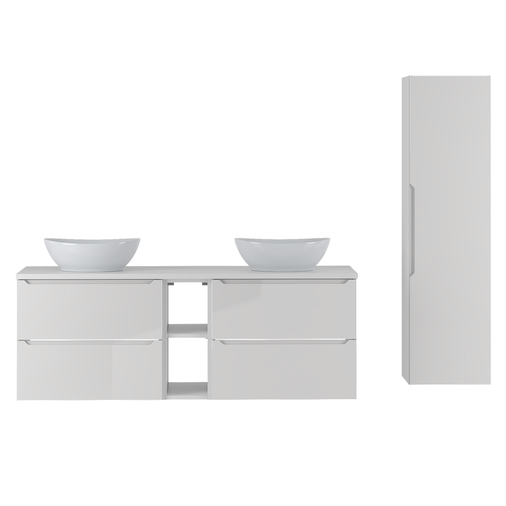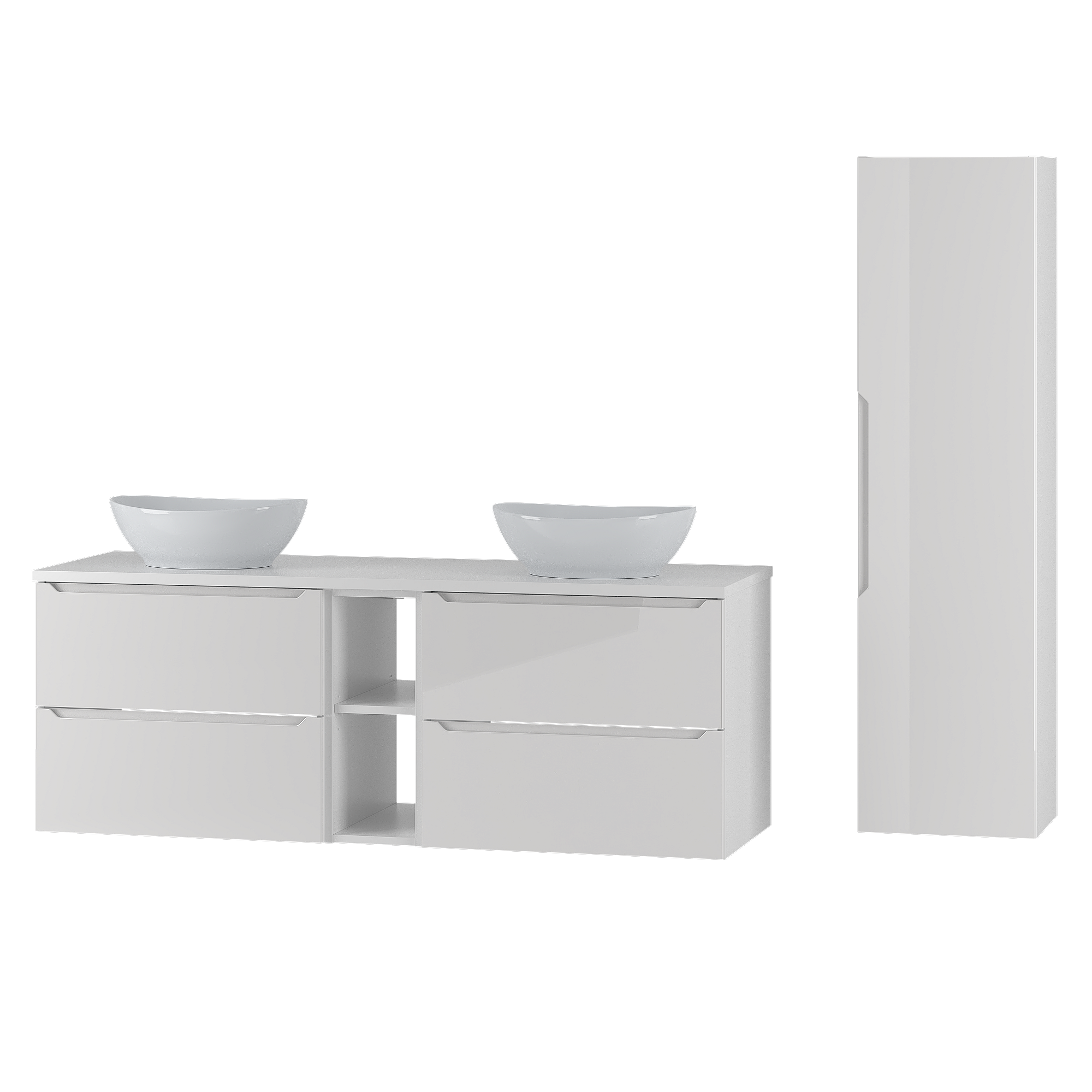 Weißes Badezimmer-Set 140 cm Schrank und Regal mit Arbeitsplatte und Waschbecken und Hochschrank Etna
