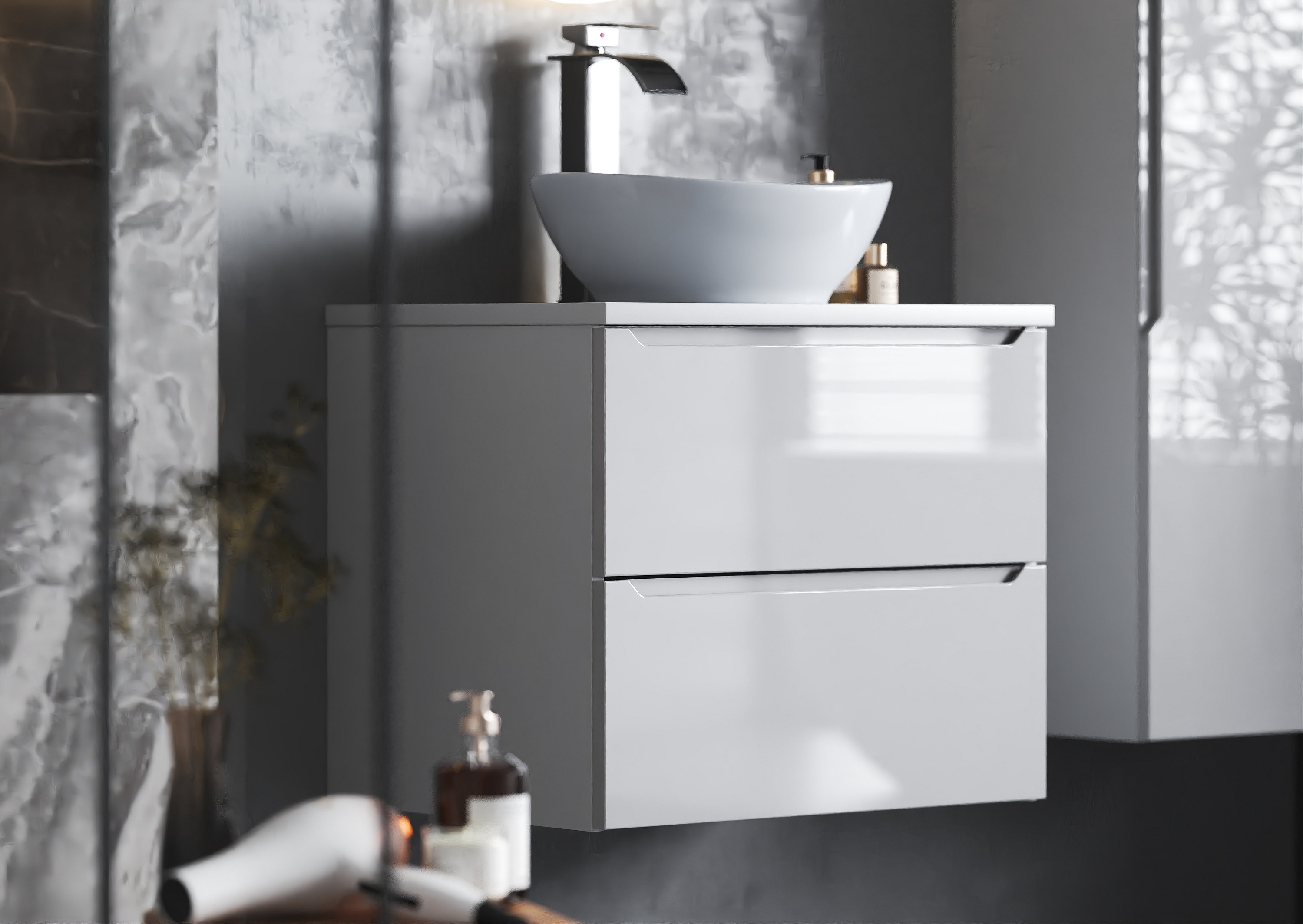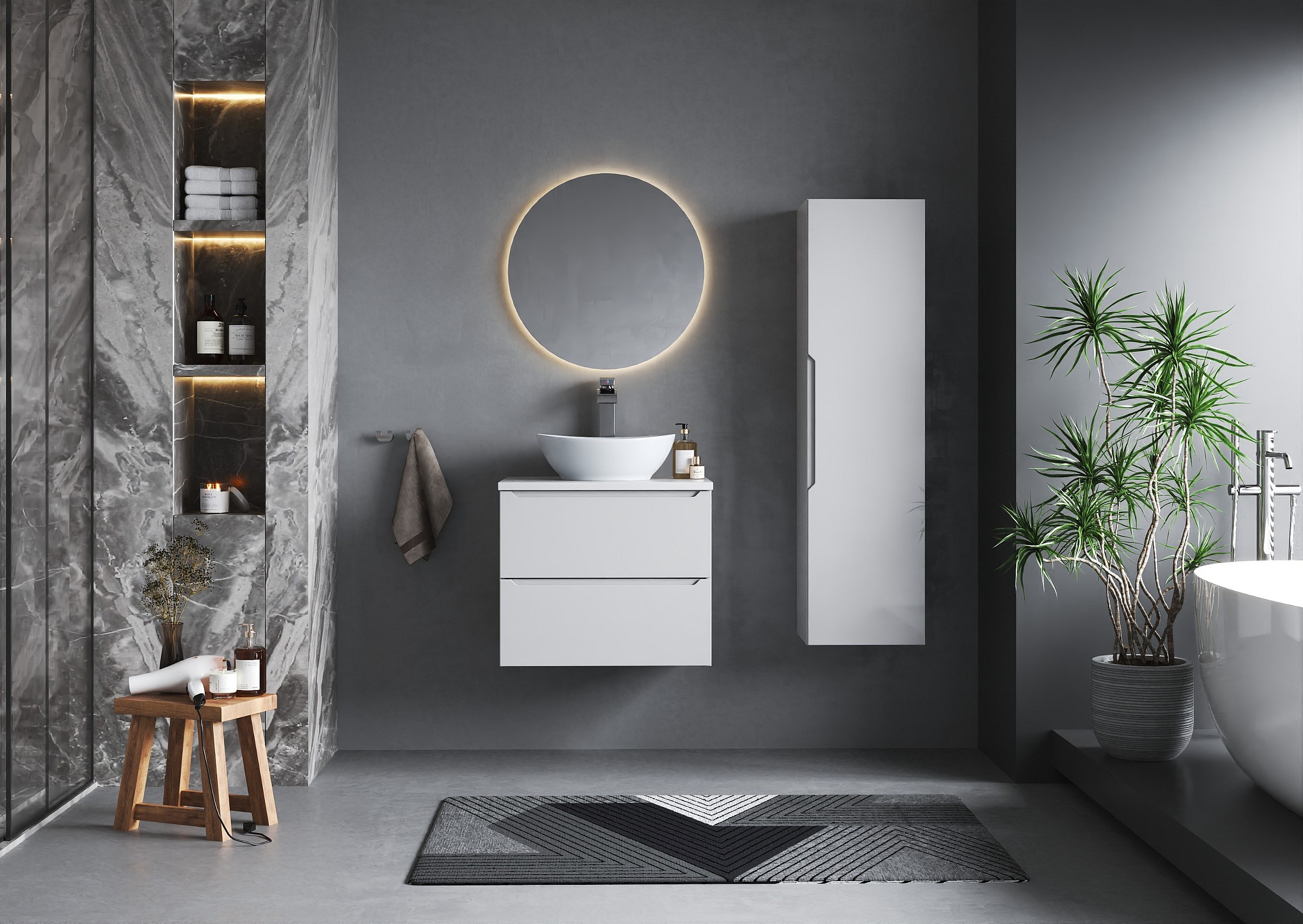 Weißes Badezimmer-Set 60 cm Schrank mit Arbeitsplatte Etna