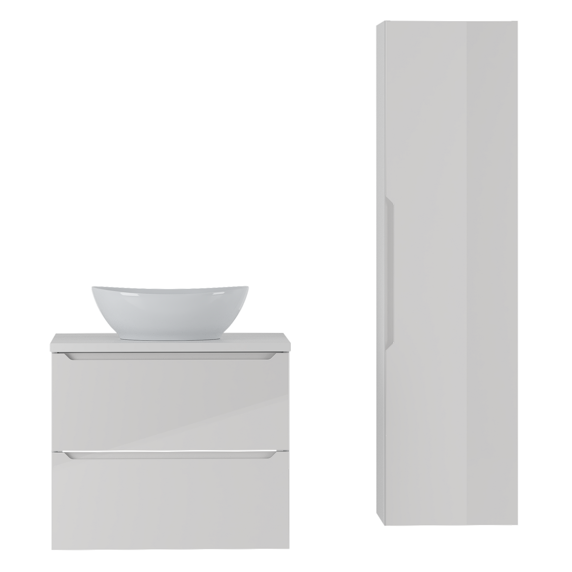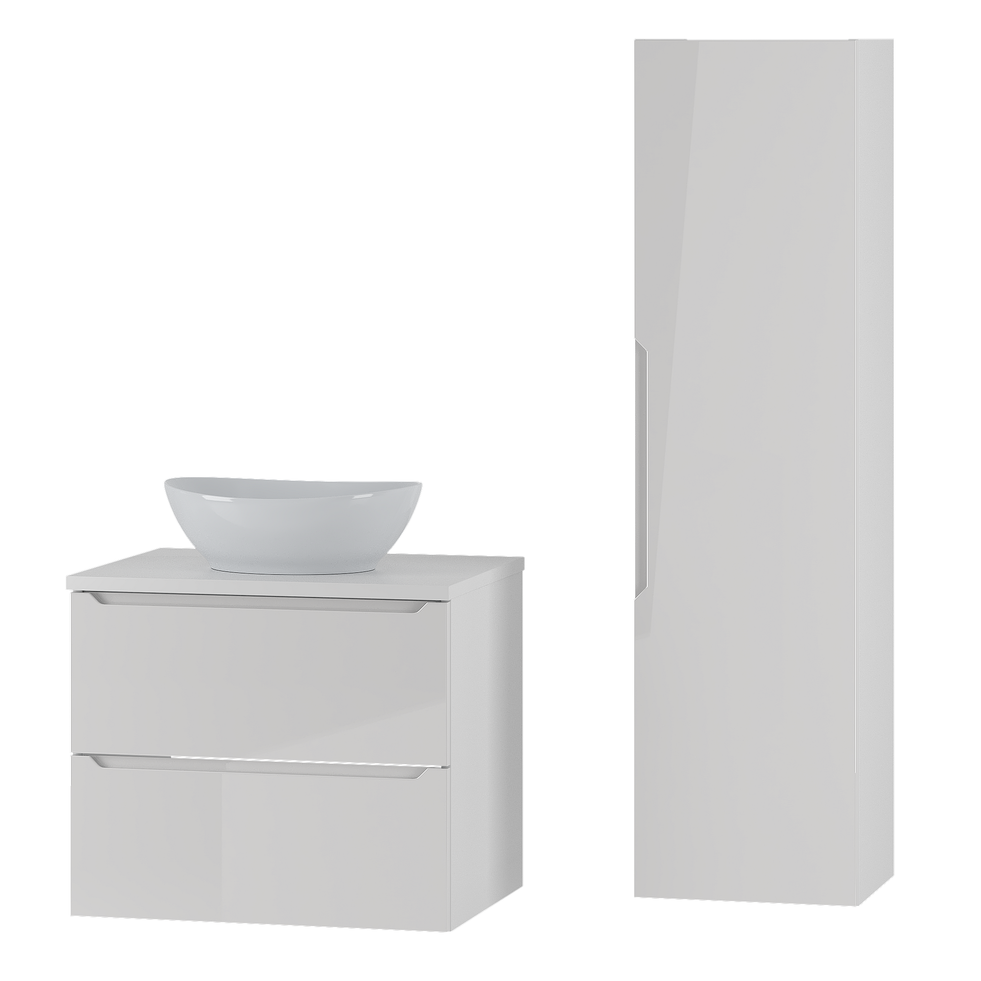 Weißes Badezimmer-Set 60 cm Schrank mit Arbeitsplatte und Waschbecken und Hochschrank Etna