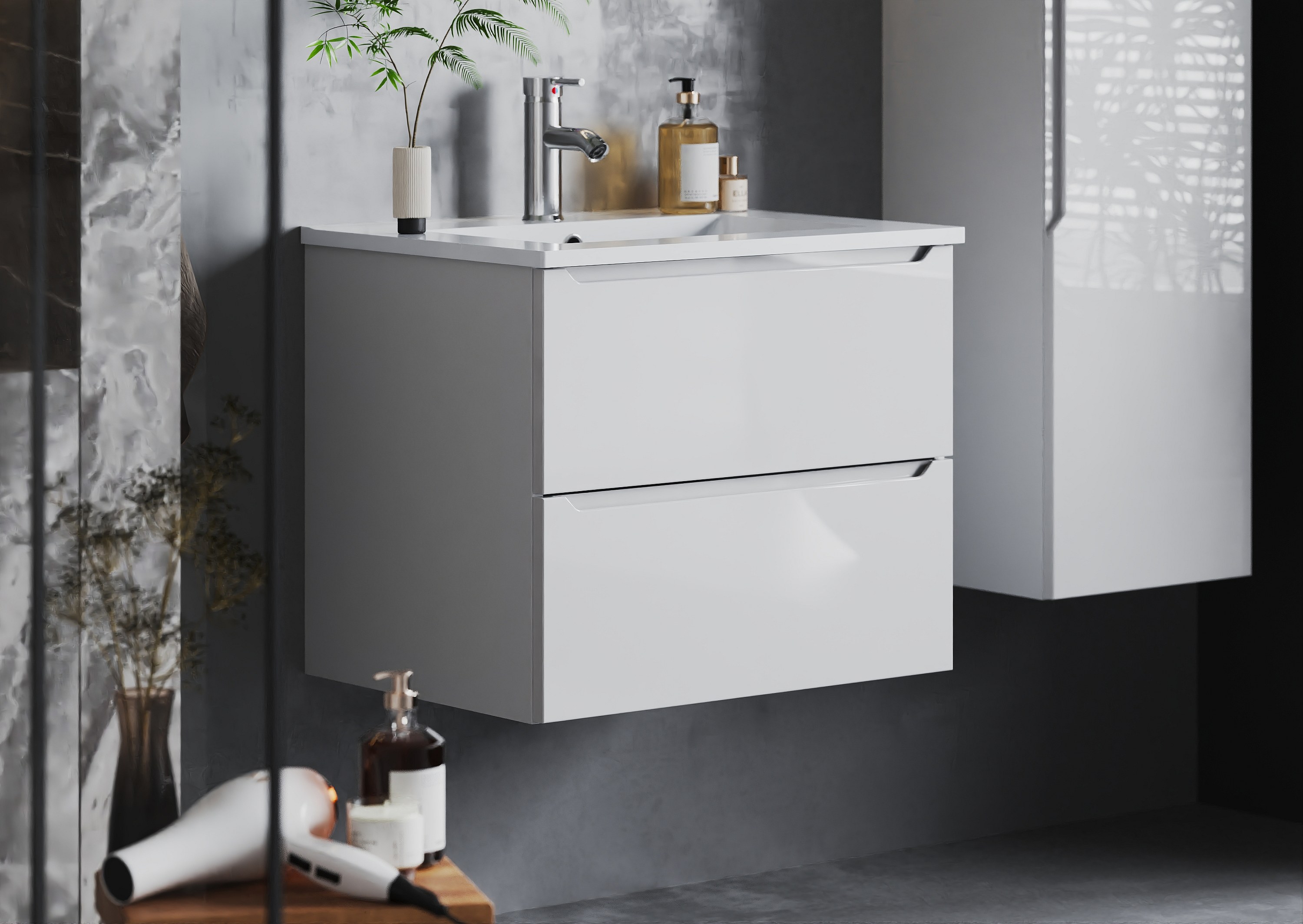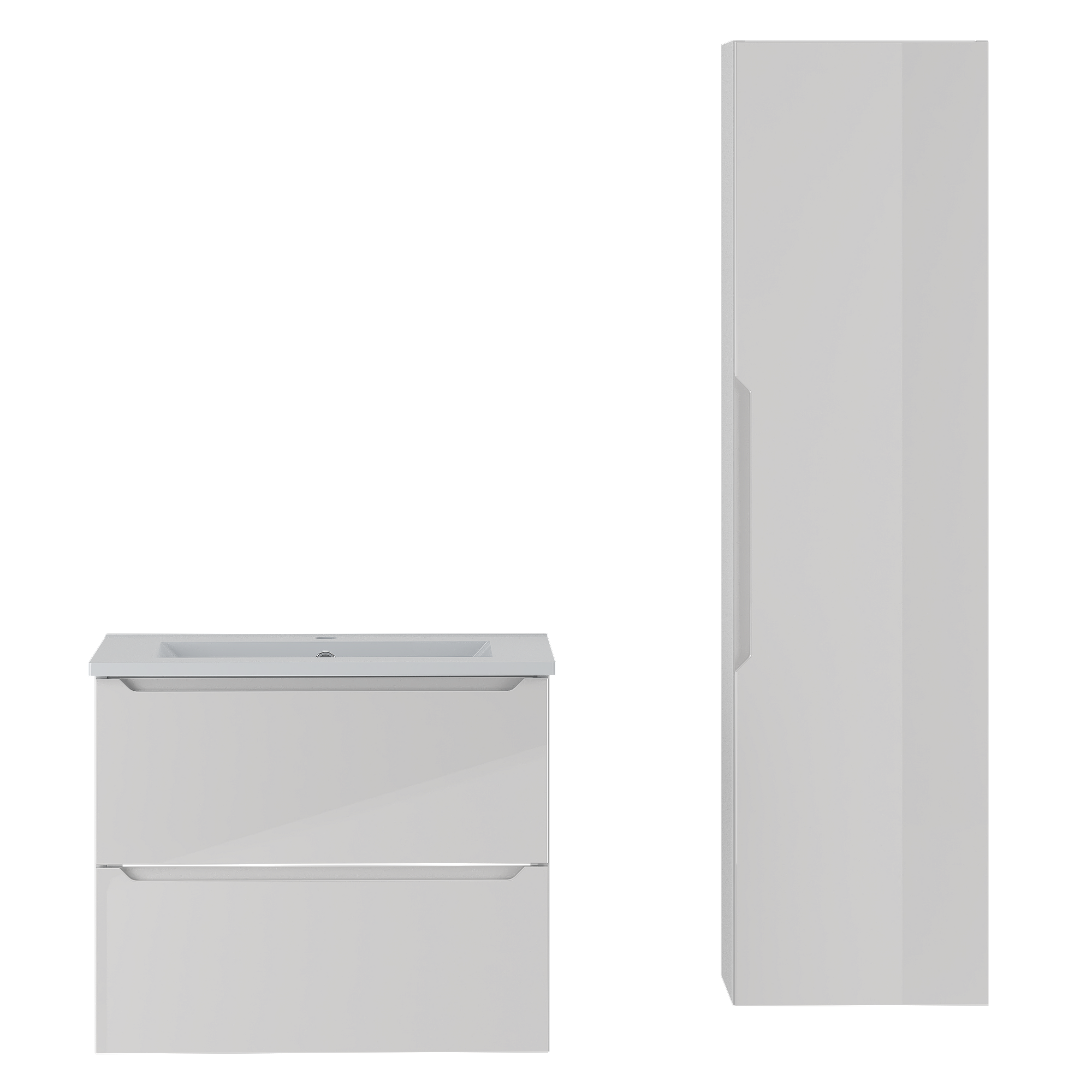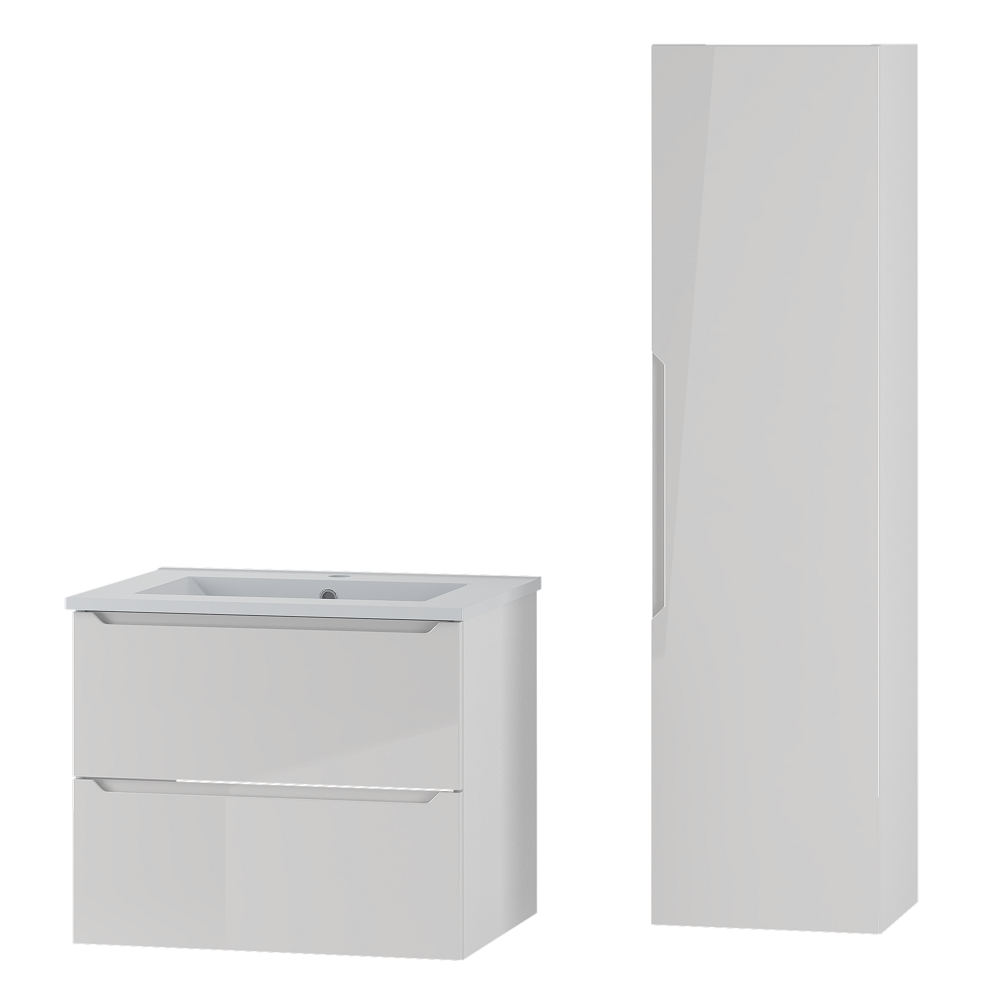 Weißes Badezimmer-Set 60 cm Schrank mit Waschbecken und Hochschrank Etna