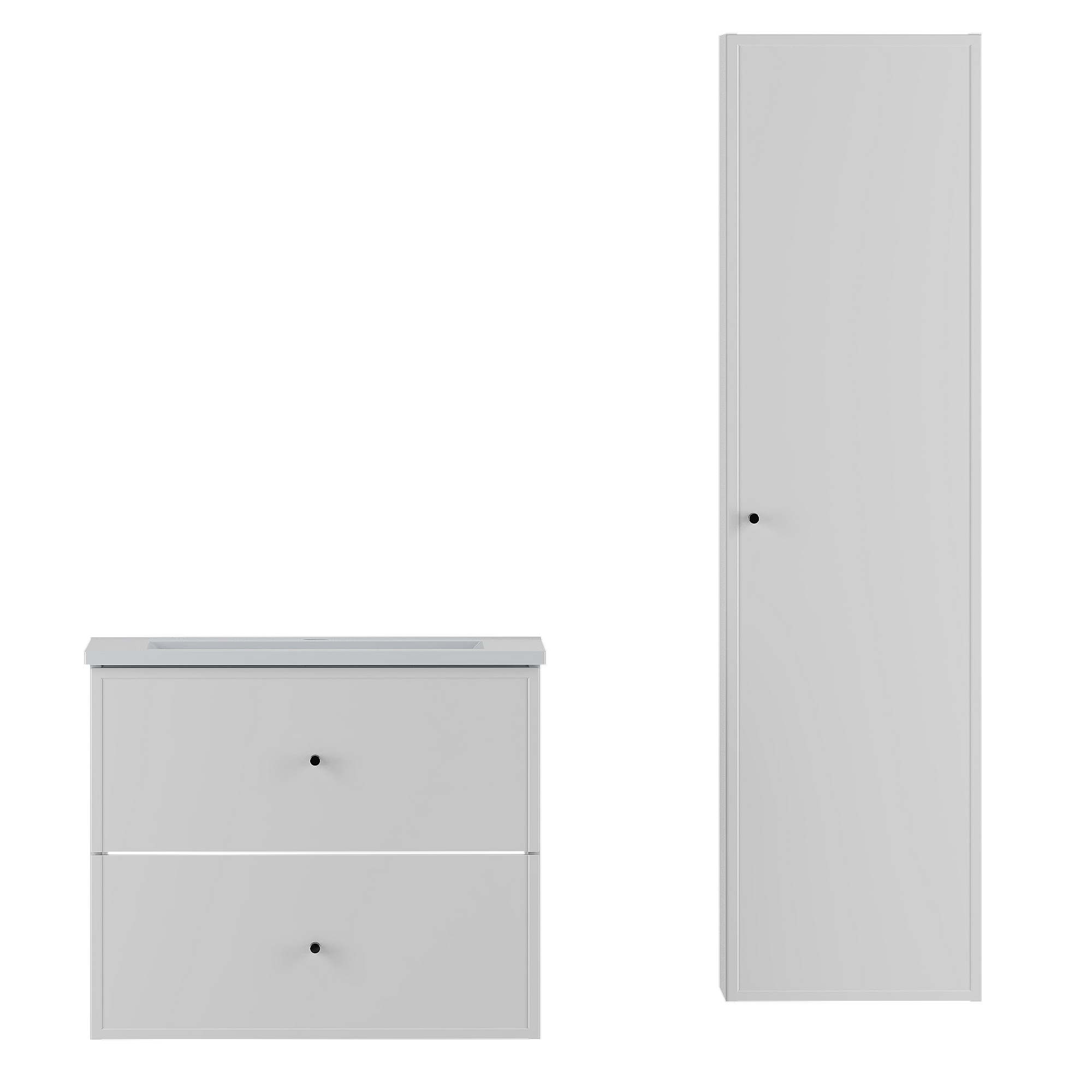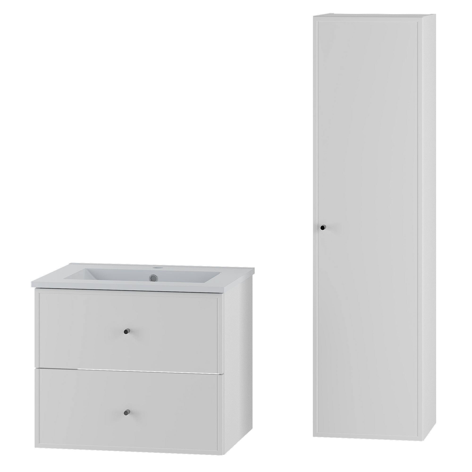 Weißes Badezimmer-Set 60 cm Schrank mit Waschbecken und Hochschrank Marco