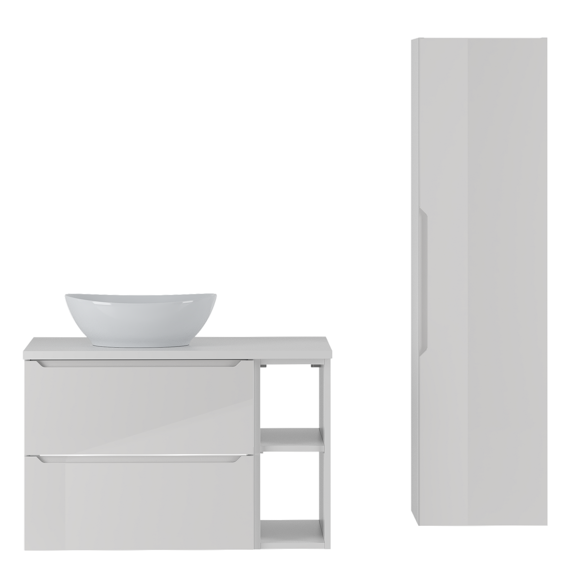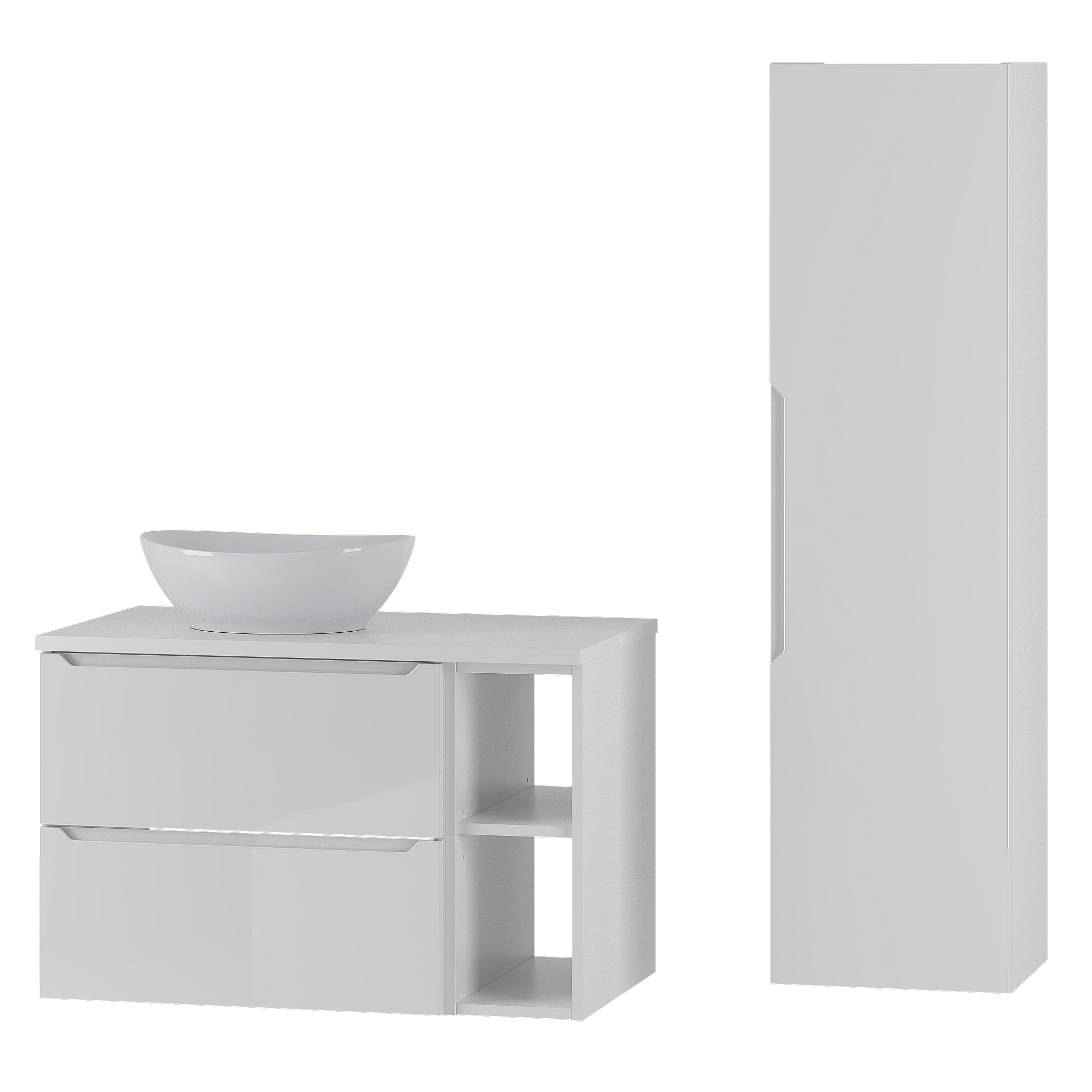 Weißes Badezimmer-Set 80 cm Schrank mit Arbeitsplatte Waschbecken und Regal und Hochschrank Etna
